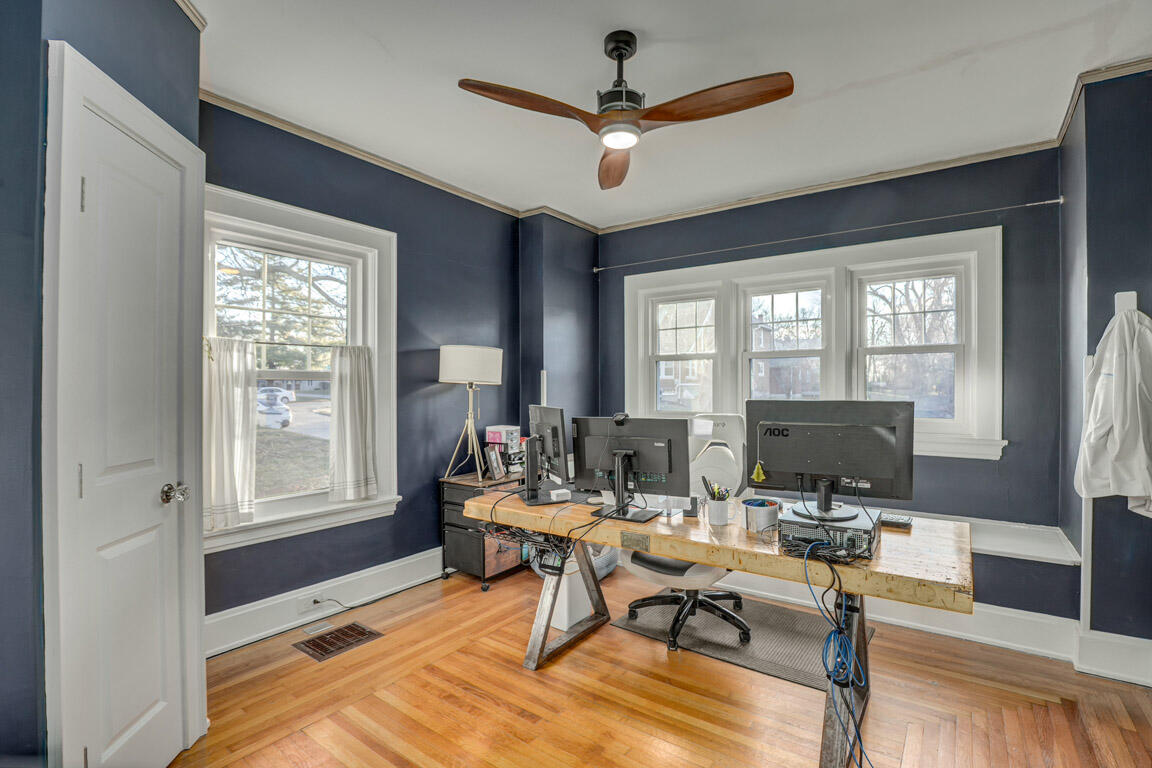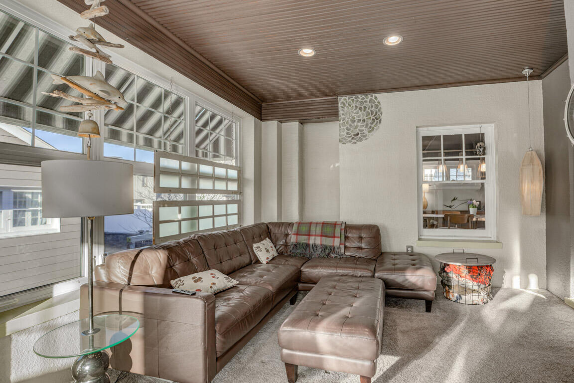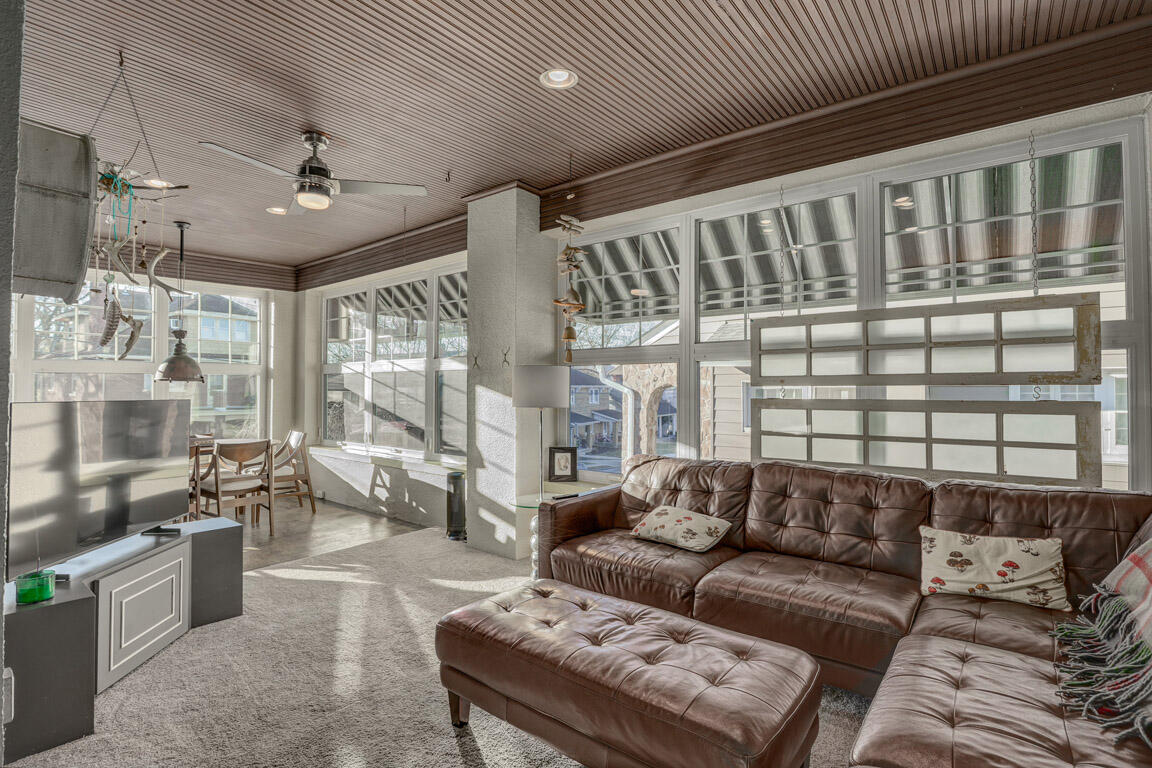A first-floor primary bedroom provides added convenience, while newer windows throughout the home fill each room with natural light. Just off the main living area, the four-season room offers year-round enjoyment.