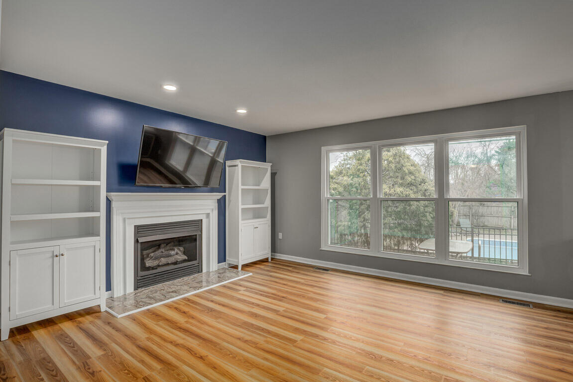 Step inside to the inviting first floor featuring a flexible dining room with double glass doors that can easily serve as a home office, study, or additional sitting area. The spacious kitchen flows seamlessly into the living room with a cozy fireplace, creating the perfect space for entertaining or everyday living. From the living area, walk out to the backyard with plenty of space for a patio and outdoor seating, ideal for relaxing or hosting friends and family around the pool.