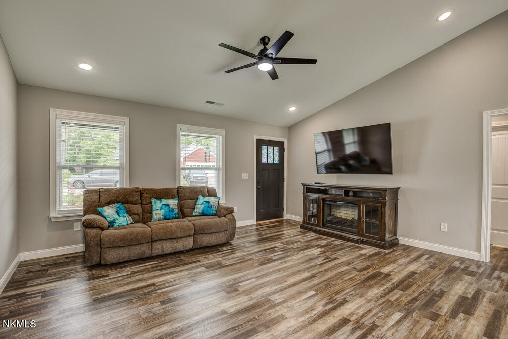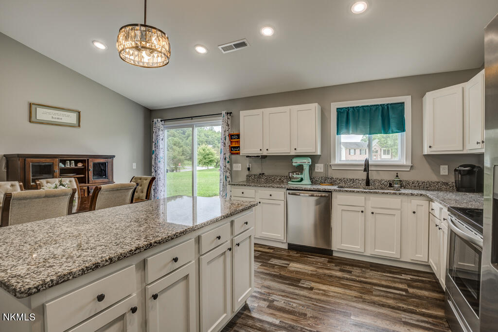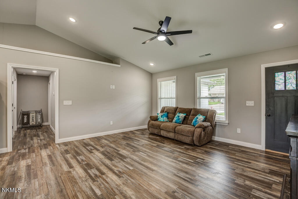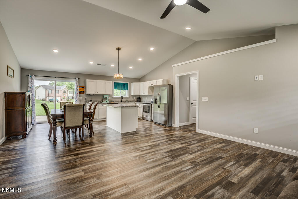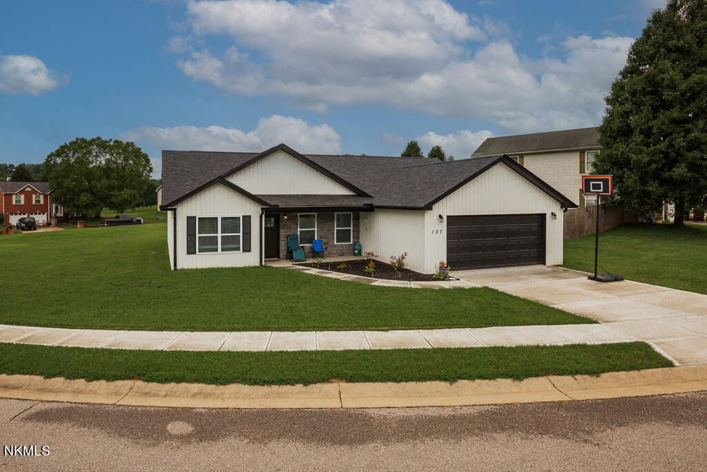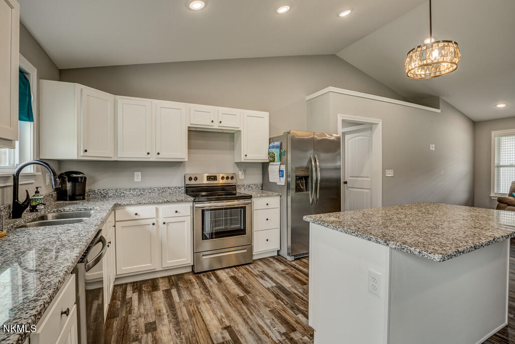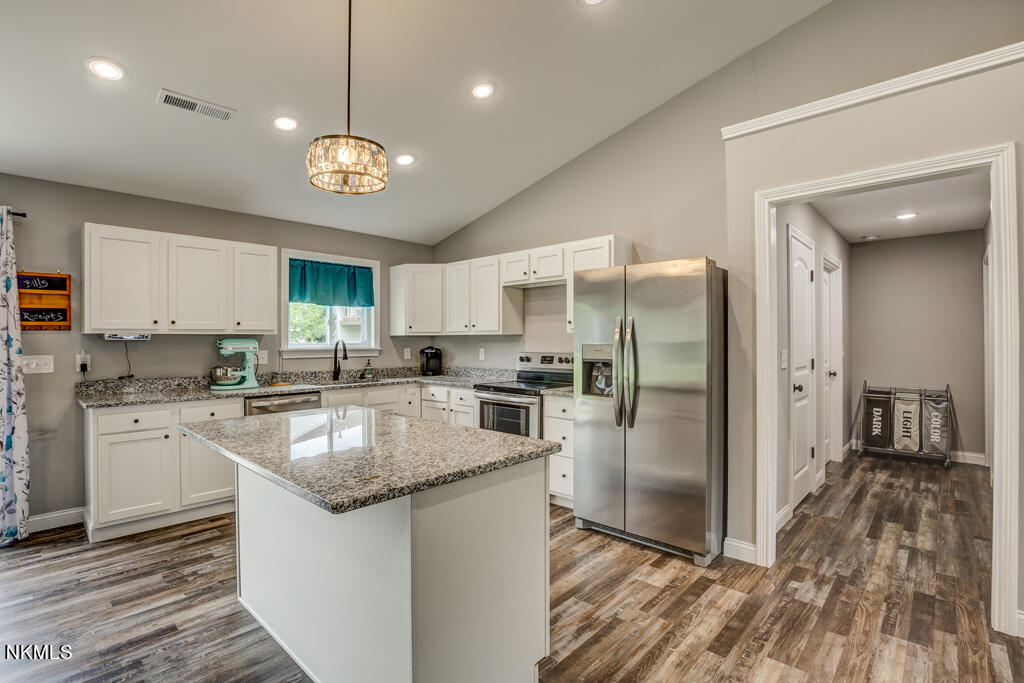 Welcome to your dream home! This 3 bedroom, 2 full bathroom zero-step ranch is almost brand new and is ready for you to move right in. The moment you step inside, you will be greeted with vaulted ceilings, an open-concept floor plan, and laminate flooring throughout the main living area. The kitchen features granite countertops, stainless steel appliances, and a spacious walk-in pantry. The owner's suite is complete with a walk-in closet and barn door leading to an adjoining bathroom with double vanity and ceramic tile shower. This home also offers a covered front porch, a back patio, and a built-in two-car garage. Located in the quiet neighborhood of Blue Heron, this home is everything you've been searching for.