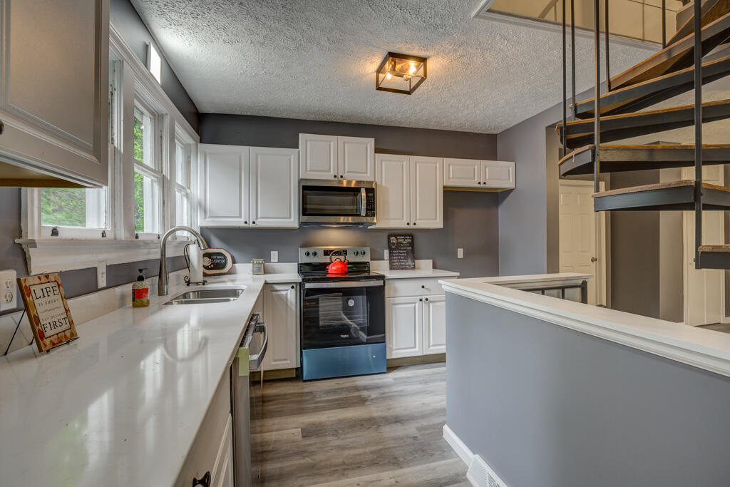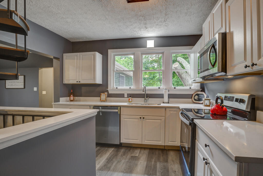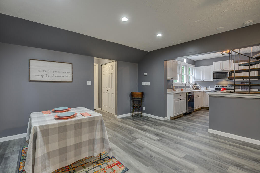 Not your cookie cutter home! If unique is what you were looking for, look no further. This is completely remodeled to Perfection. Four bd two full ba home has a owner Suite with a Huge walk-in closet and killer bath! There is a large second bedroom w/ cathedral ceilings and a new bath right outside the door. Kitchen boasts all new quartz countertops, stainless appliances, fixtures, windows and lighting throughout. A newly poured driveway that will fit multiple cars as well as a one car garage with a Breezeway to the home. You will love the private backyard and is Situated at the end of a dead end street. Close to everything!