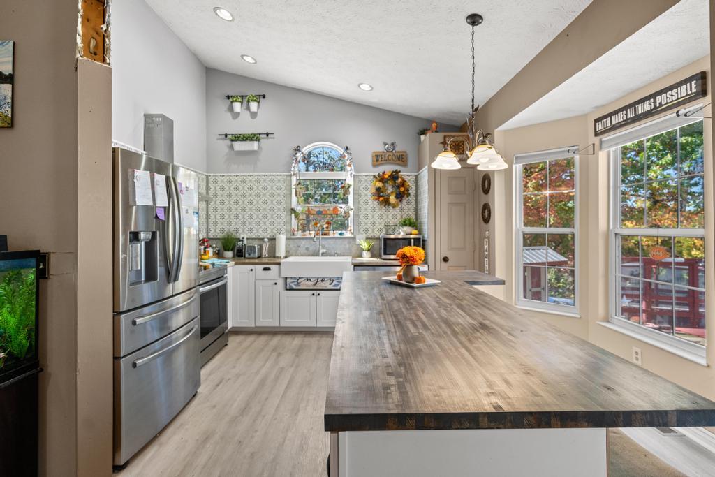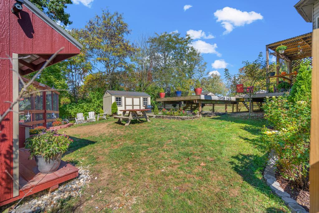 The most gorgeous yard on a cul-de-sac court. This four bedroom two and a half bath bi- level has an open kitchen, that is equipped with new cabinets, countertops, and a farm sink with new hardware and faucet. Tons of light and opens to covered porch and large deck. Want to move a little country into the city? Have no fear have your own chickens with Deluxe coup and fantastic huge14x10 omissions shed.