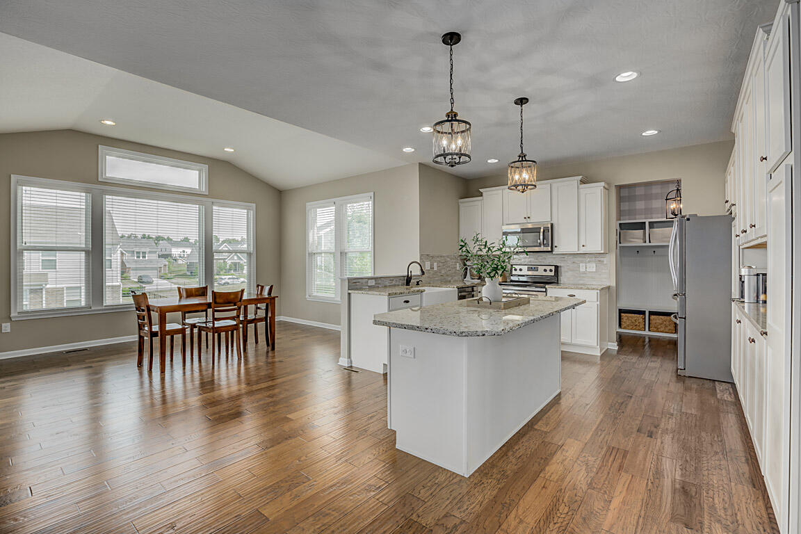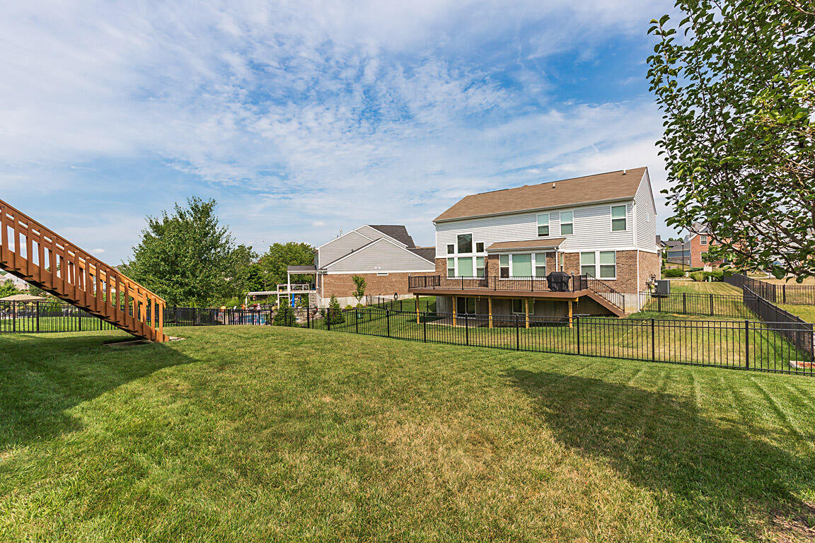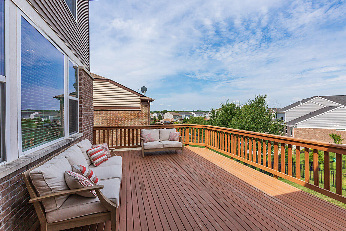 Stunning Showplace Alert! This exquisite 2-story Fischer Home in the coveted Triple Crown community epitomizes modern elegance. Step inside to discover a beautifully appointed kitchen boasting granite countertops, stainless steel appliances, and a stylish tiled backsplash. Enjoy your morning coffee in the expansive breakfast room, which opens seamlessly to a deck perfect for relaxation. The main level also features a formal dining room, a study with French doors, and a laundry room and living room open to kitchen. With 9-foot ceilings, hand-scraped hardwood floors, and upgraded lighting throughout, this home exudes sophistication. The open-concept design ensures a seamless flow between living spaces, while the walk-in closets and convenient drop zone add to the functional luxury. The lower level offers a walk-out to a fully fenced, flat backyard with a rubber-mulched play area under the deck--ideal for summer fun. Plus, enjoy serene lake views and easy access to the neighborhood park, just a short stroll away. Don't miss your chance to own this exceptional property!