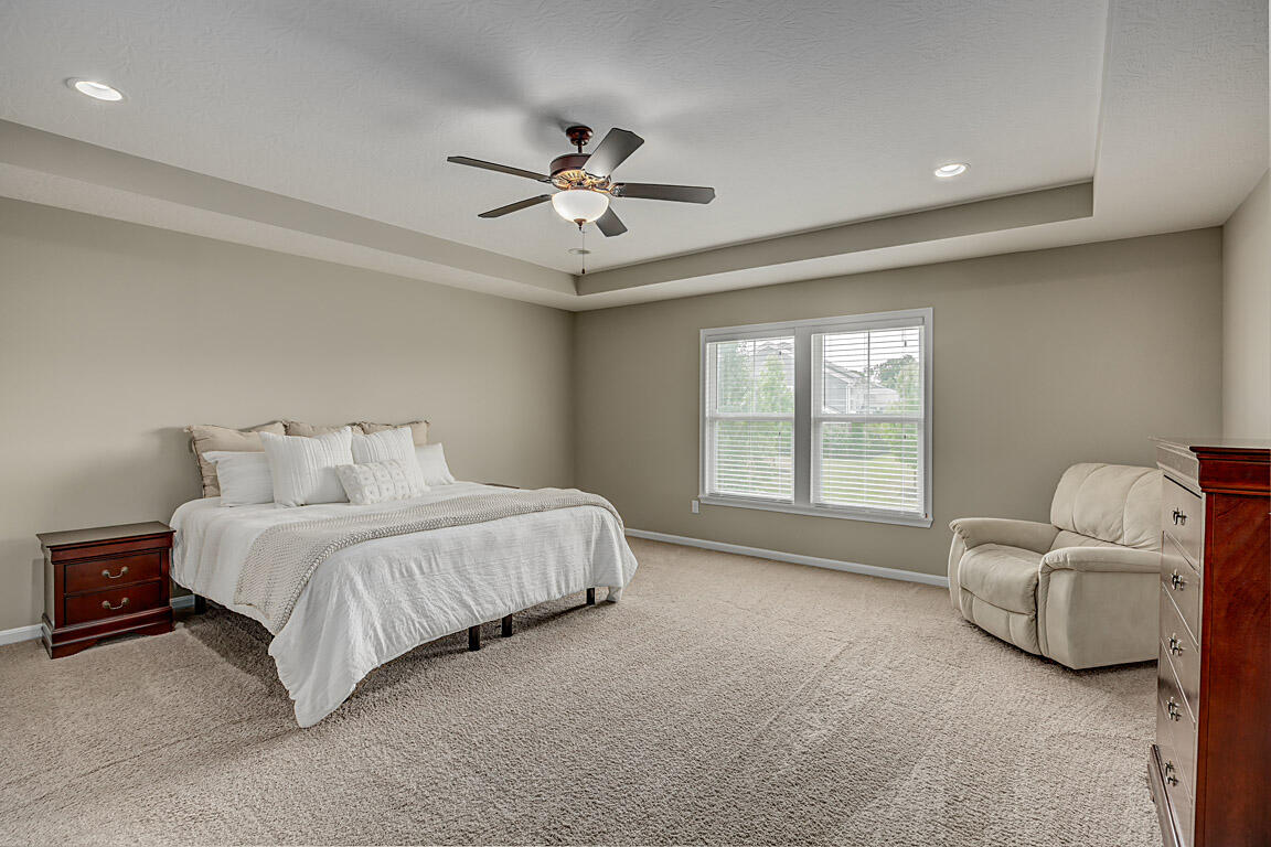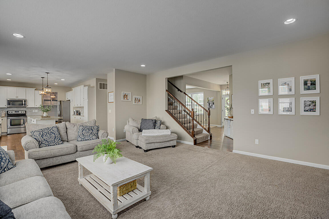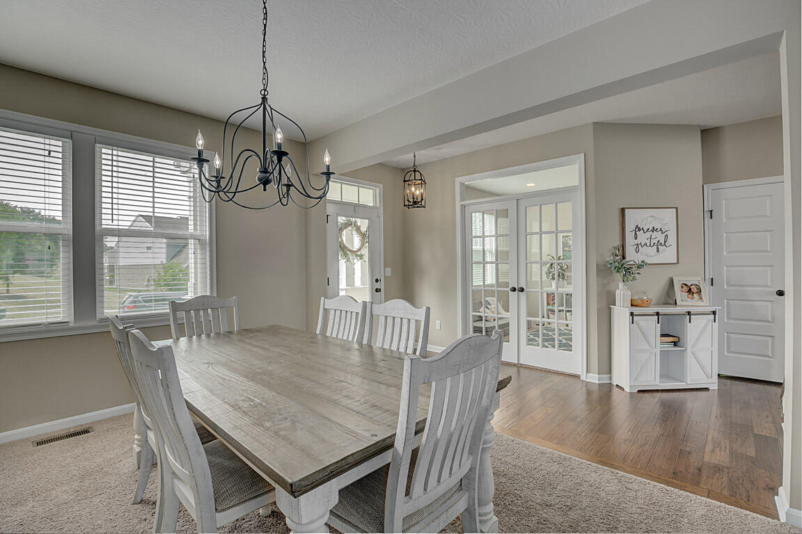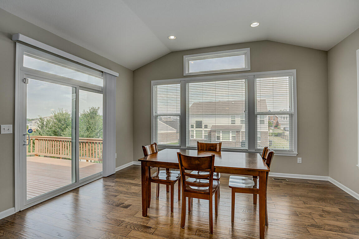 Stunning Showplace Alert! This exquisite 2-story Fischer Home in the coveted Triple Crown community epitomizes modern elegance. Step inside to discover a beautifully appointed kitchen boasting granite countertops, stainless steel appliances, and a stylish tiled backsplash. Enjoy your morning coffee in the expansive breakfast room, which opens seamlessly to a deck perfect for relaxation. The main level also features a formal dining room, a study with French doors, and a laundry room and living room open to kitchen. With 9-foot ceilings, hand-scraped hardwood floors, and upgraded lighting throughout, this home exudes sophistication. The open-concept design ensures a seamless flow between living spaces, while the walk-in closets and convenient drop zone add to the functional luxury. The lower level offers a walk-out to a fully fenced, flat backyard with a rubber-mulched play area under the deck--ideal for summer fun. Plus, enjoy serene lake views and easy access to the neighborhood park, just a short stroll away. Don't miss your chance to own this exceptional property!