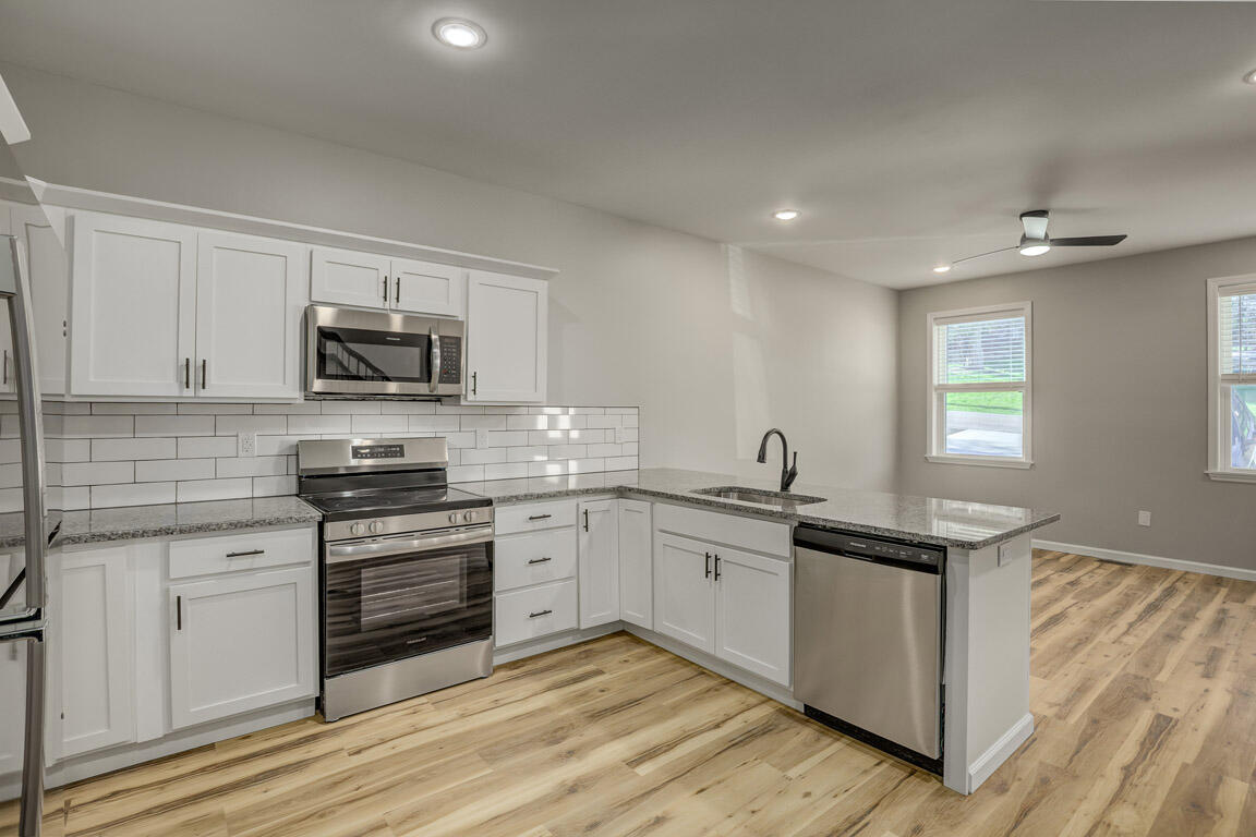 Each mirrored unit features three bedrooms, two full baths, a second-floor laundry room, a finished lower-level rec room, and a one-car garage. The stunning kitchens include stainless steel appliances, granite countertops, and luxury vinyl plank flooring that flows throughout the entire unit, even the lower level.