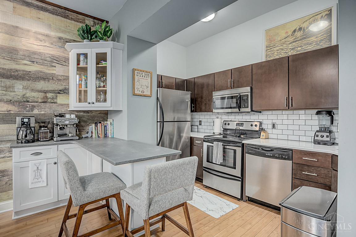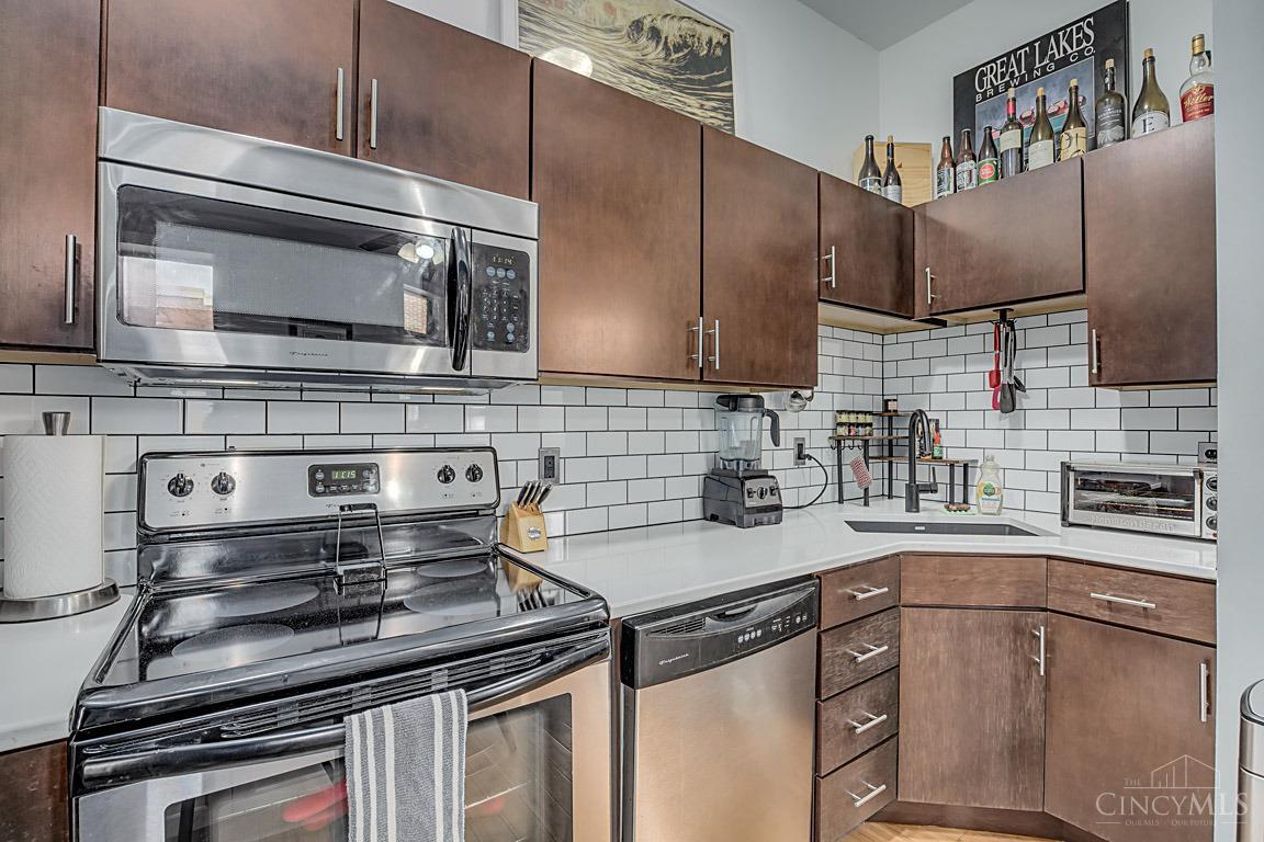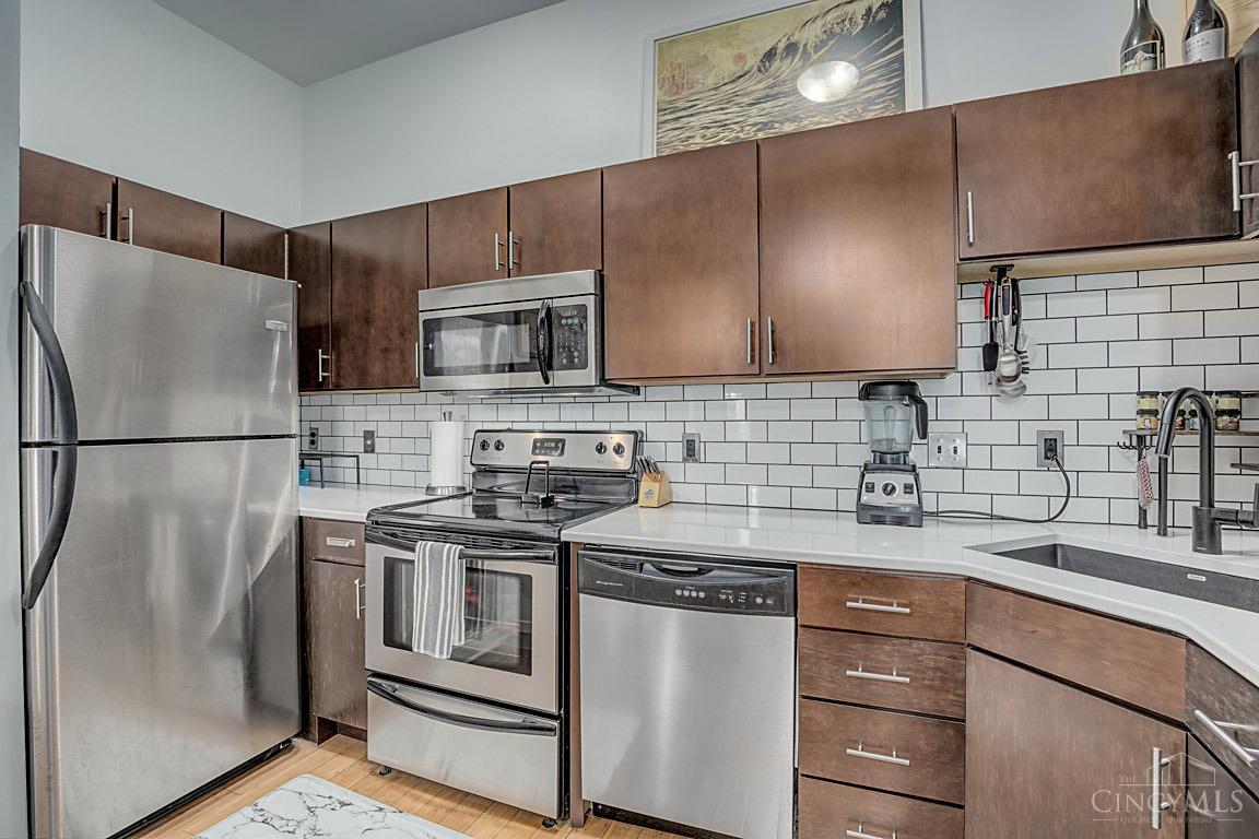 Trendy upscale living has never been better in OTR. Just steps away from restaurants, bars and entertainment. Walk to Bengals, FC and reds stadiums within minutes. This two bedroom one bath condo boast bamboo flooring throughout. You'll love this spacious kitchen with new island, cabinetry, quartz countertops, and stainless steel appliances. With 9ft ceilings and wonderful deck right off the living area, there is lots of light in this third floor unit. Want a little extra space for your friends or entertaining? The rooftop deck offers plenty of that! This unit is the perfect place to call home!
