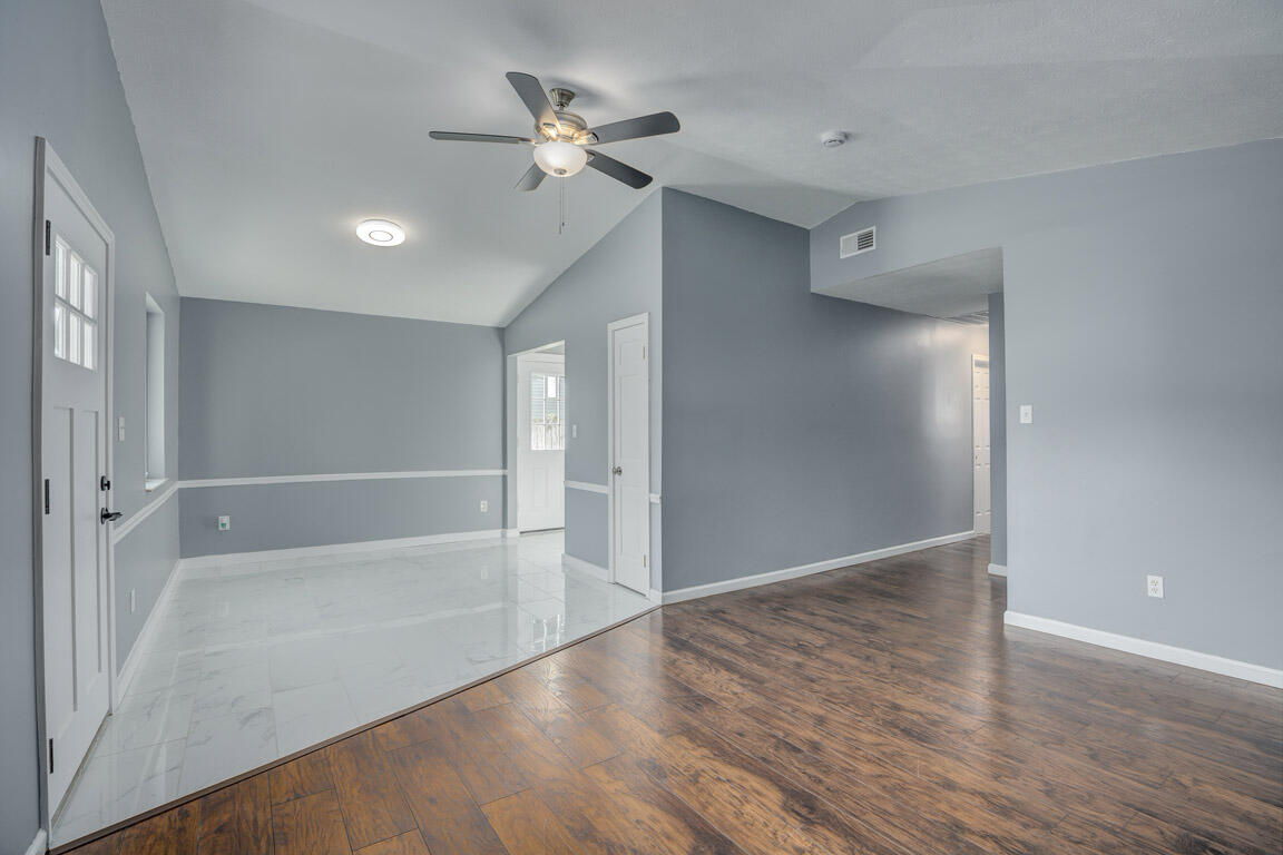 Looking for a ranch with only one step to enter cheaper than you can rent? This one is waiting for you. This three bedroom ranch has been updated and ready to call home. From the new kitchen with Quartz countertops, stainless steel appliances, cabinets, light fixtures and fans, this home is turn key. You will love the new LVT flooring in the living , bedrooms and the beautiful marble tile floors in the kitchen and dining room. The bath has been updated with new tile flooring and surround for the tub. New vanity, fixtures, toilet and mirrors. With cathedral ceilings in the living and dining room and a nice back yard and plenty of off street parking, you will see why this one you will want to call home.