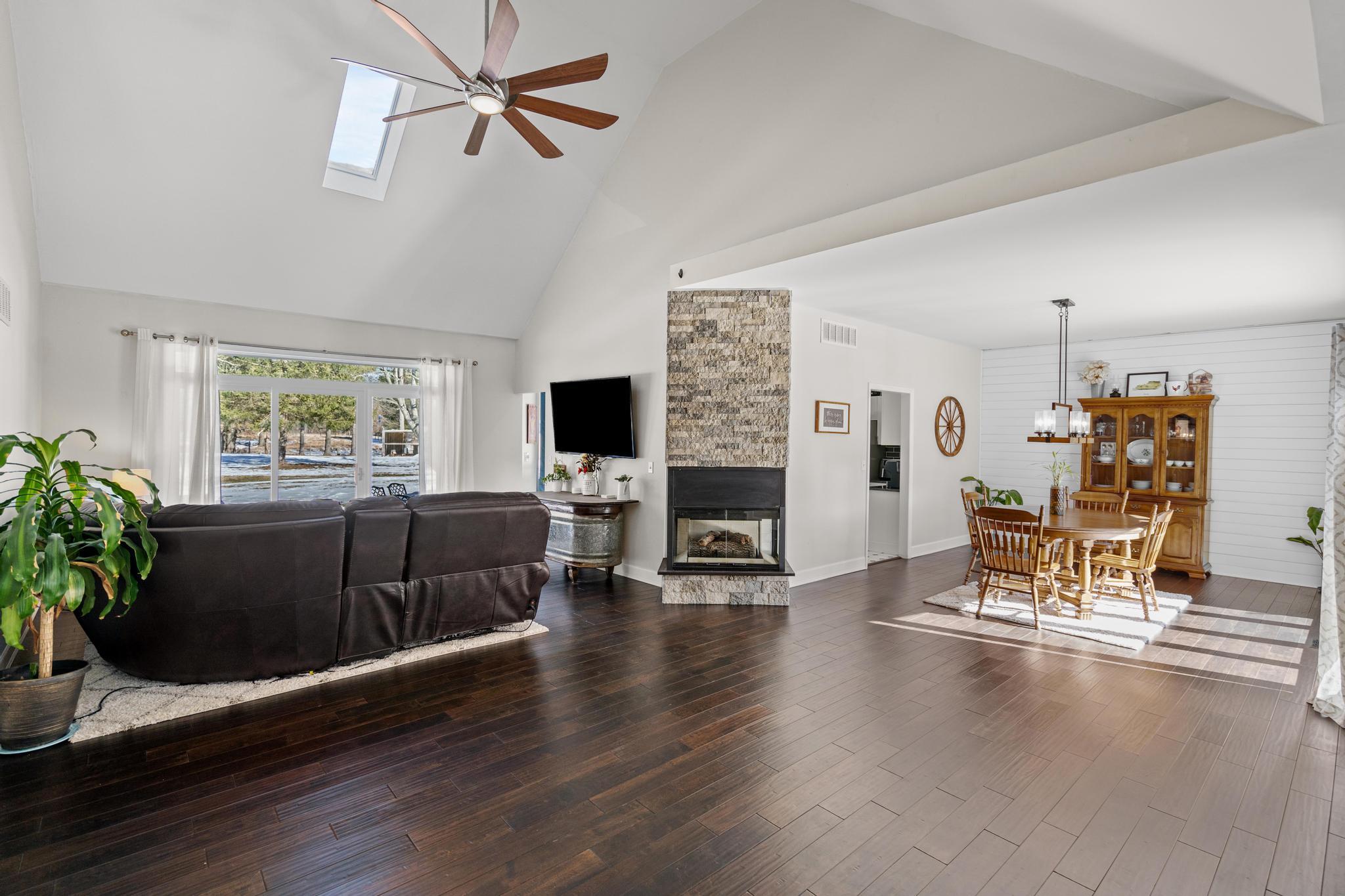 Stunning home sitting on nearly 5 perfect acres! This beautiful home has been updated throughout and shows like a masterpiece. From soaring ceilings in the great room with stone fireplace and new bamboo floors, to the newly designed first floor owners suite. Enter into the bathroom with dual shower, double quartz top vanities, and to top it off, a new huge walk-in closet. As you head up stairs, you will find two nice sized bedrooms and jack and jill full bath. The formal dining just off kitchen makes entertaining a breeze. You will be shocked when walking down to the Lower level, This enormous space has so many possibilities, with kitchenette and walkout it is ready for entertaining. You will not want to miss this beauty!
