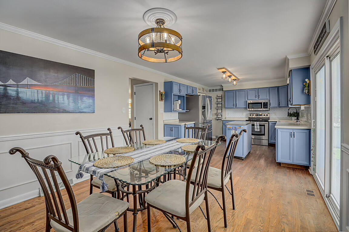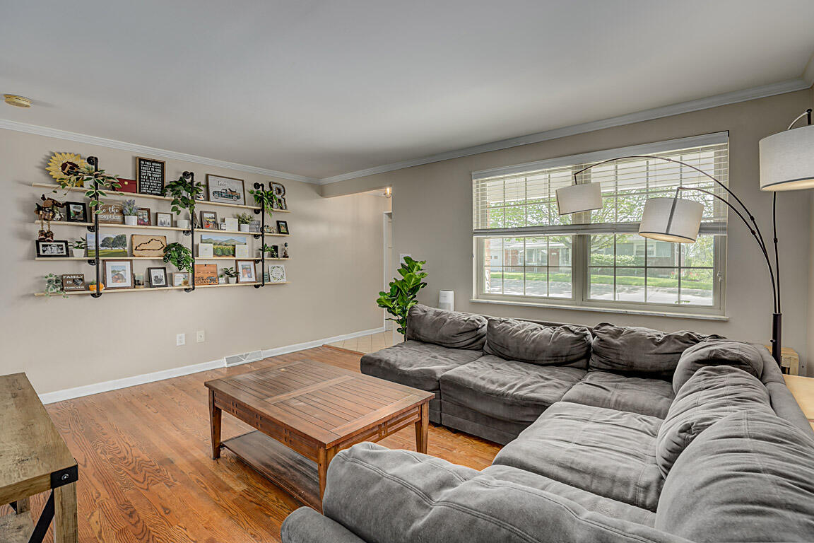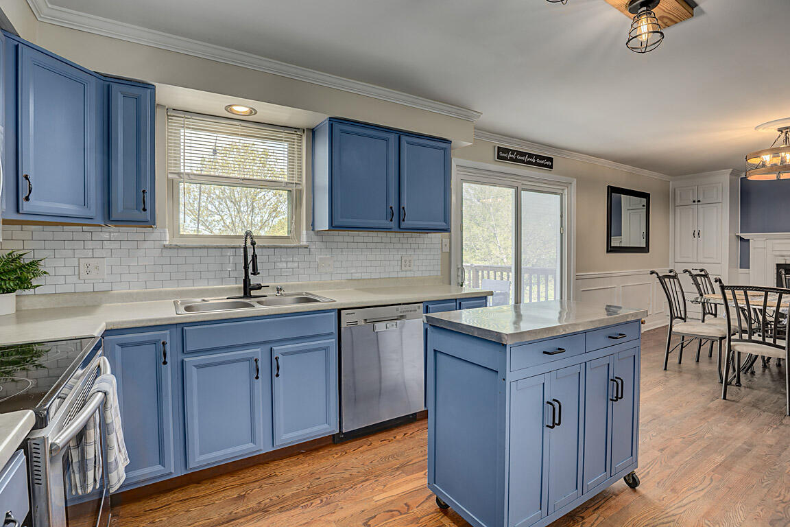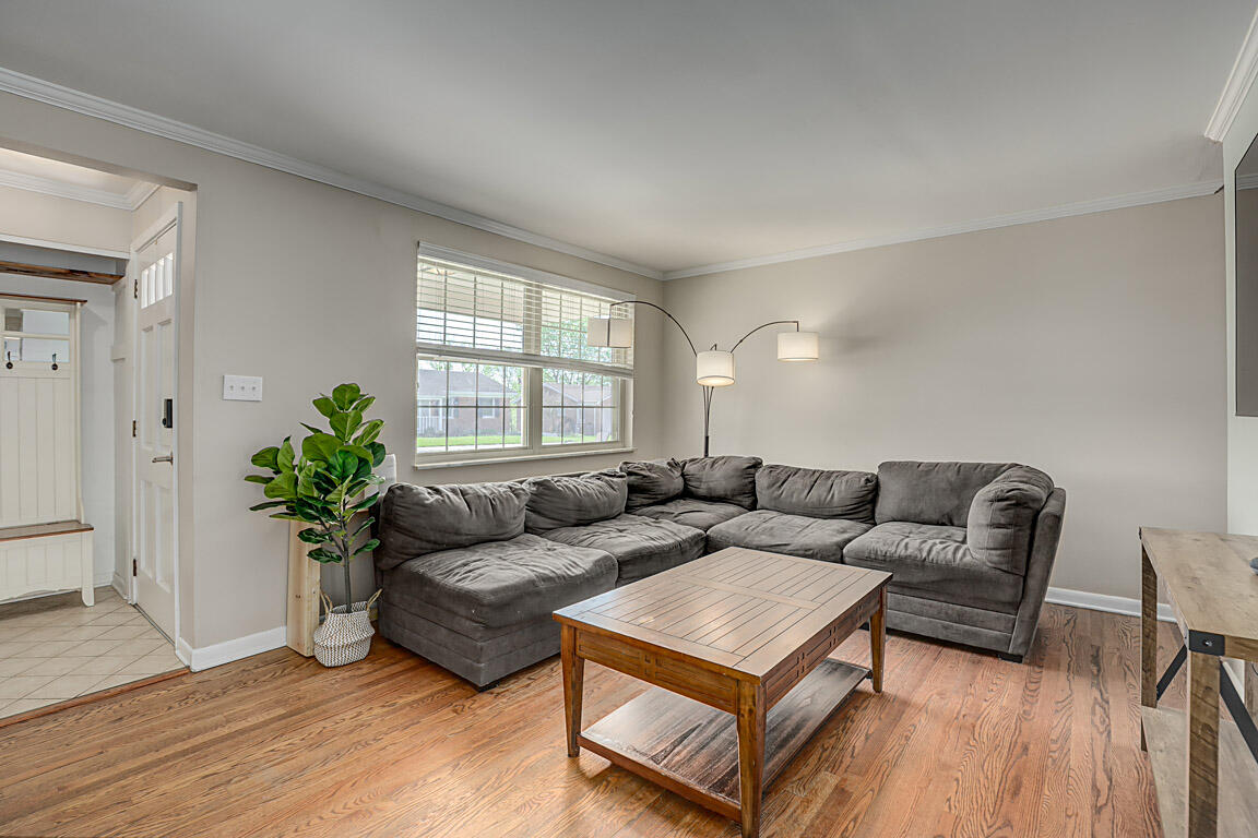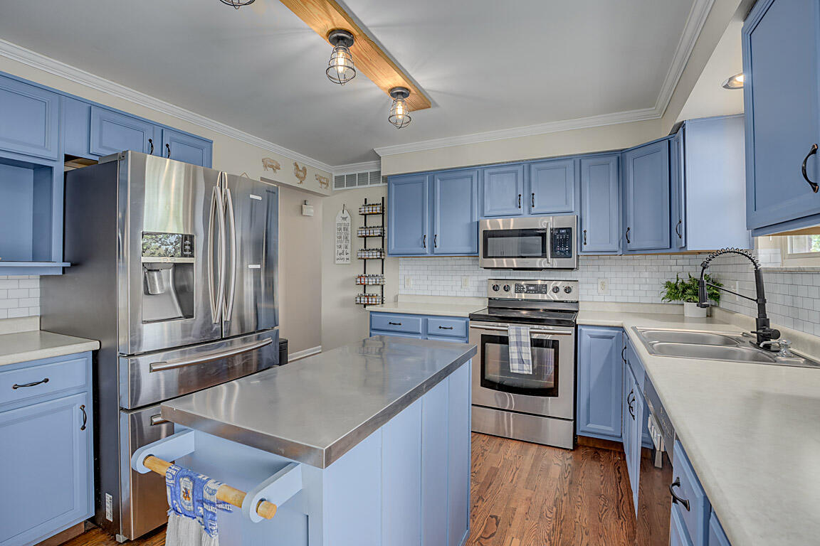 Welcome to this spacious and stylish brick ranch home nestled on half-acre lot, offering the perfect blend of comfort, functionality, and entertaining space. The main floor boasts a bright and open layout featuring three generously sized bedrooms, including a primary suite with an attached half bath for added privacy. The sunlit living room flows seamlessly into the open-concept kitchen and dining area, complete with sleek stainless steel appliances, a movable island for flexible prep or serving space, and plenty of cabinetry for storage.