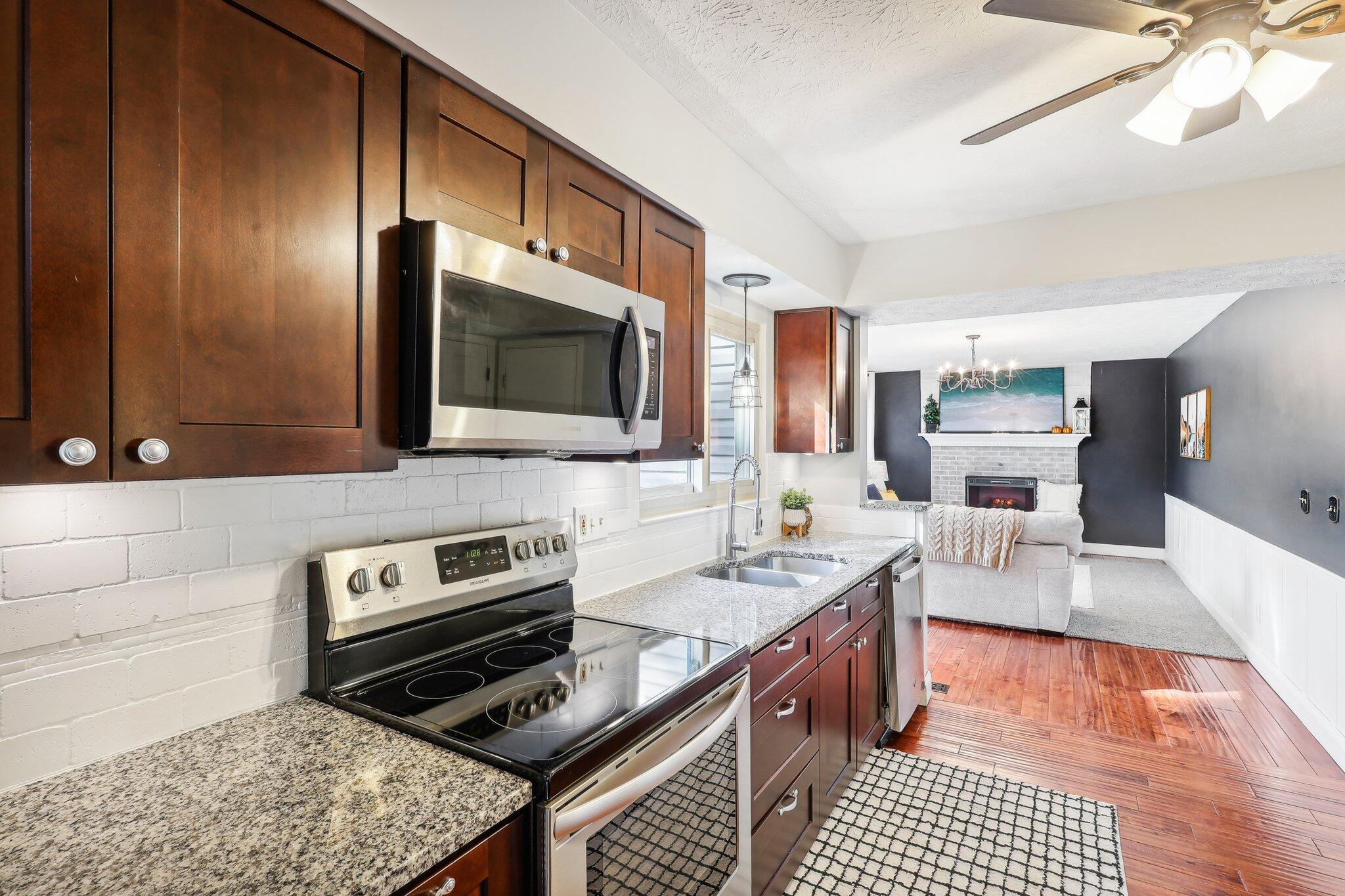 Nestled in a quiet cul-de-sac on nearly half an acre, this meticulously maintained five-bedroom, four-bath home offers both privacy and natural beauty. The main floor welcomes you with hardwood flooring, an updated primary suite bathroom, and a kitchen featuring granite countertops, new hardware, a sleek faucet, and a modern sink. Upstairs, you'll find four additional bedrooms and a hall bath with updated tilework. The expansive lower level is perfect for entertaining, complete with a bedroom, full bath, and easy access to the large patio. Step outside to the inviting backyard, where an amazing entertaining area awaits--ideal for s'mores, yard games, and relaxation. Homes like this, with such a perfect combination of space, neighborhood charm, and an exceptional yard, are rare. This is the one!
