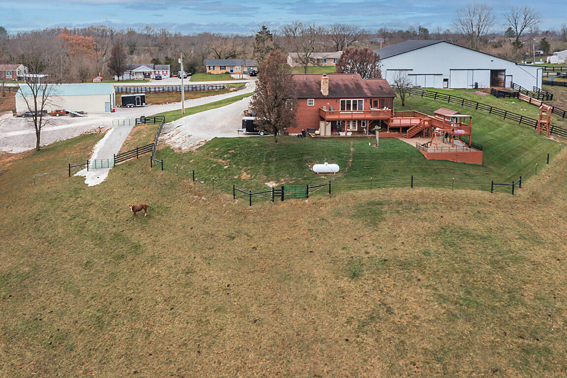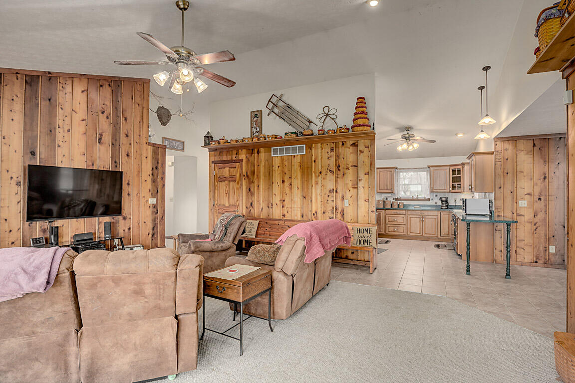 Retreating to the country never looked so good. Bring your horses or livestock to this mini farm on over 4 acres with a pond and 3/4 stall barn w/hayloft on the back with of the newly built detached garage. This 30X64 building was built with a 30x40 shop with 200 amp service, water. The ranch home has three bedroom, large open living area from living to kitchen and dining area. soaring ceilings with stone fireplace and real pine paneling give this home the comfort you are desire. The lower level is a walk-out with a full bath and plenty of finished living space. There is a 2 car attached garage and outdoors is a dream for all. Shed in back yard will not remain.