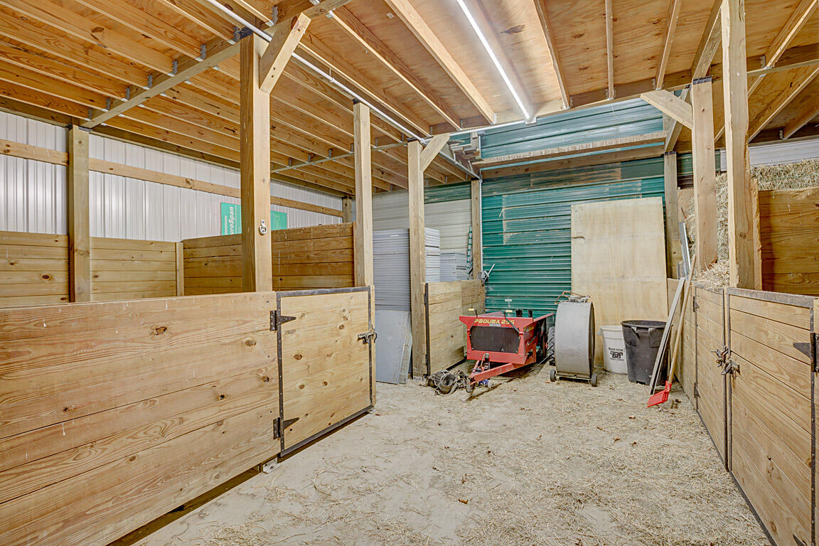 Additional information: Footers and slab are monolithic pour, 4000psi concrete mix, 7'' slab thickness, half inch rebar on 16'' grid, over 3,000' of rebar. 40ton of DGA compacted base under slab, walls are 2x6 on 2' center, R-19 wall insulation. Roof has double bubble insulation under metal. Ceiling has r50 blown in insulation. Footers have insulation upper half. All wiring is 12/2 or larger. 1/2'' OSB walls. Horse area is monolithic pour, pier and slab foundation, 3,000 psi mix.