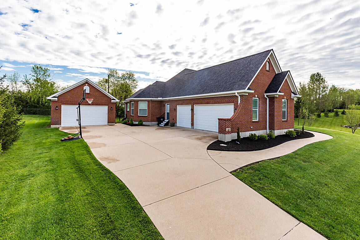 This exquisite 4-bedroom, 3.5-bath custom ranch with nearly 5000 square feet is a rare find--nestled on a flat, private half-acre lot in an intimate enclave of custom homes.
