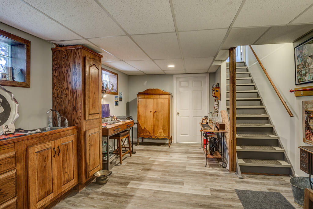 Look no further! Perfect 3 bed brick ranch is ready for you to move right in. This home features laminate flooring throughout the main living areas along with an updated kitchen that boasts granite countertops, stainless steel appliances, tons of storage space and walks out to large deck perfect for entertaining. The backyard oasis is just what you have been searching for! In addition to the deck, there is a covered patio, fire pit, starter garden, and a fully fenced-in yard with a wooded view and plenty of space for a pool or playset! Steps away from Alexandria Park where you can hike, fish, play basketball or baseball! The finished basement includes a spacious family room with fireplace, bonus room that could be used as a perfect fourth bed, a half bath/laundry room, as well as a workshop with walk-out access. Minutes to schools, parks, dining, and more! (agents please read agent remarks for more details)