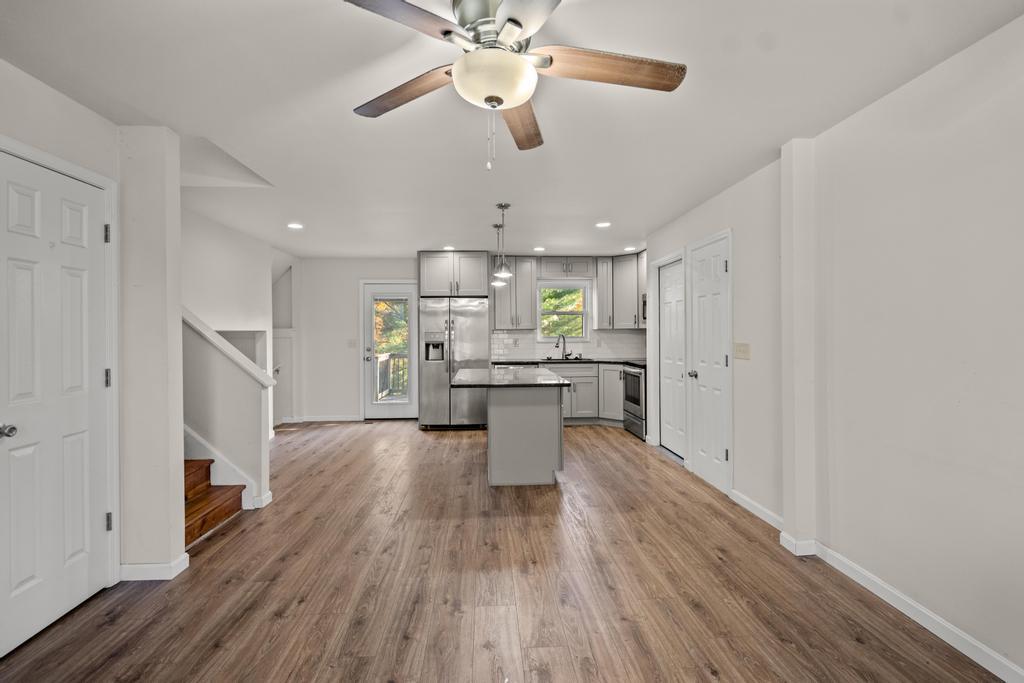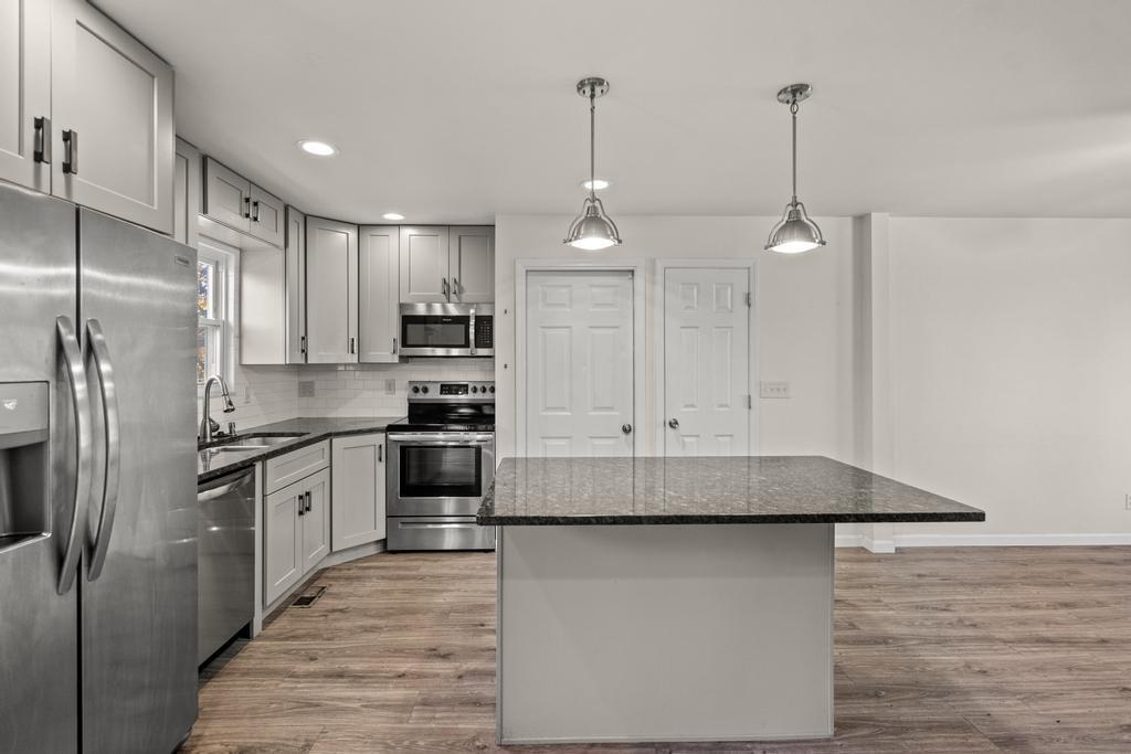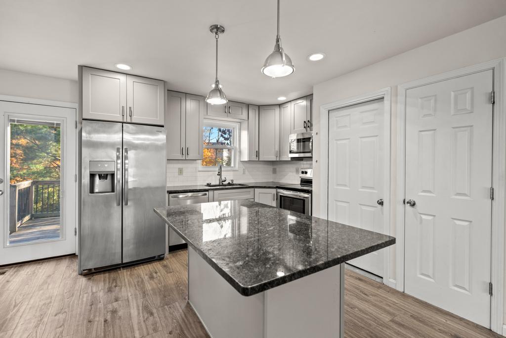 Beautifully renovated Tri Level home is ready to move right in! This 4 bed, 2 bath home has everything on your list! Open concept living, perfect for entertaining, with large kitchen that features granite counters, stainless steel appliances and island seating! Walk right out to a deck overlooking wooded back yard, ideal for fall get togethers! Lower level boasts family room with woodburing stove and walk out. Lower level bedroom is perfect primary suite with adjoining bath and laundry, or great office space with plenty of privacy. Three additional bedrooms and full bath upstairs. Oversized two car garage with attic storage and work bench. This home has it all!