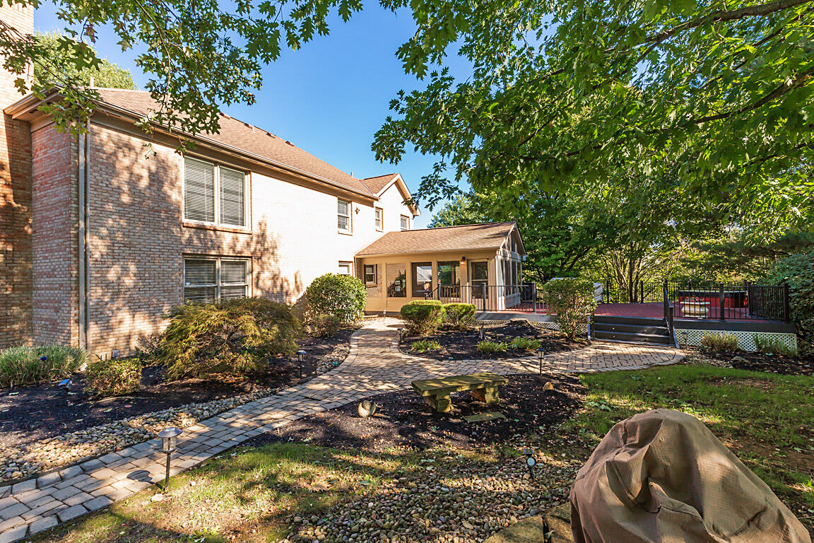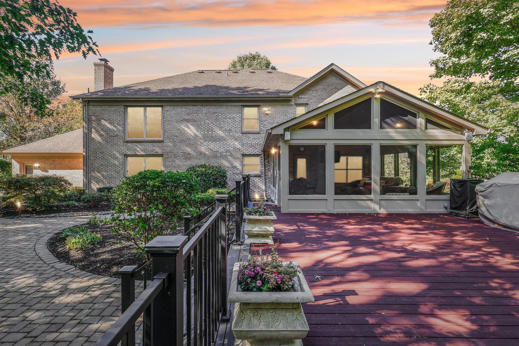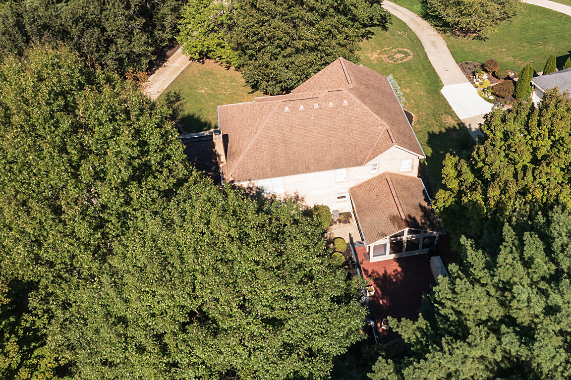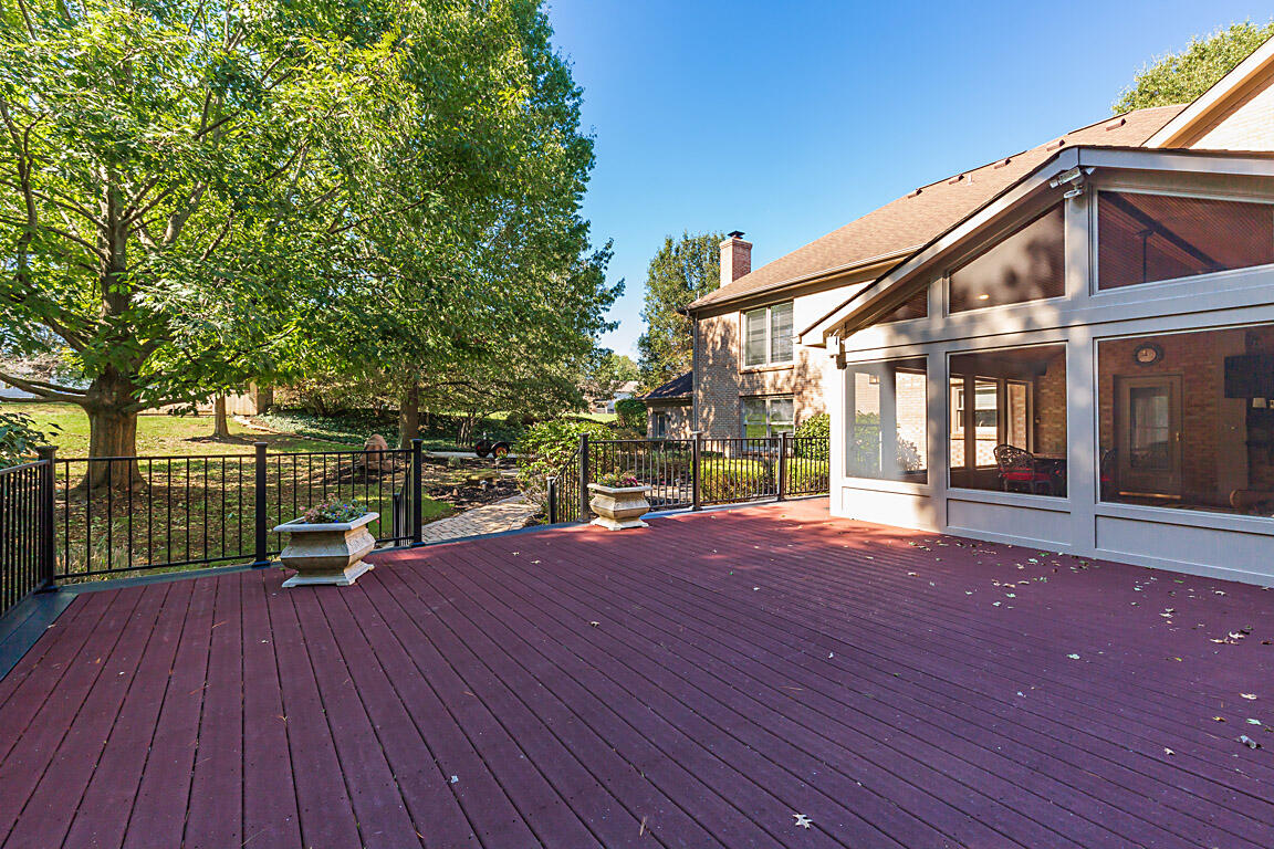 Welcome to this executive home, on a private acre+ lot in the prestigious Parlor Grove. Three finished levels balances luxury, space, and privacy. Entering the grand two-story foyer, you'll immediately notice the study and versatile living room that could also serve as a second office or a playroom. The dining room flows seamlessly into the breakfast room, which leads to the three-season room with composite decking that extends to this parklike outdoors. The kitchen has stainless steel appliances, hardwood floors, granite countertops, and a pantry for ample storage. The stunning two-story family room, with a striking stone fireplace, offers an incredible setting for a 25-foot Tree for the holidays, super bowl parties, or cozy nights. The rear staircase to the upper level is where you'll find three large bedrooms plus the primary suite w/ vaulted ceilings w/a newly remodeled bathroom. Walk-in shower, new double vanity, modern faucets, and mirrors, make it the perfect sanctuary. The lower level was custom built for entertainment by Jobe .Complete with a wet bar, wine & reg. fridge, DW, Microwave and a full a full bath. 3 car tandem garage with a shed! Showing for backup offers