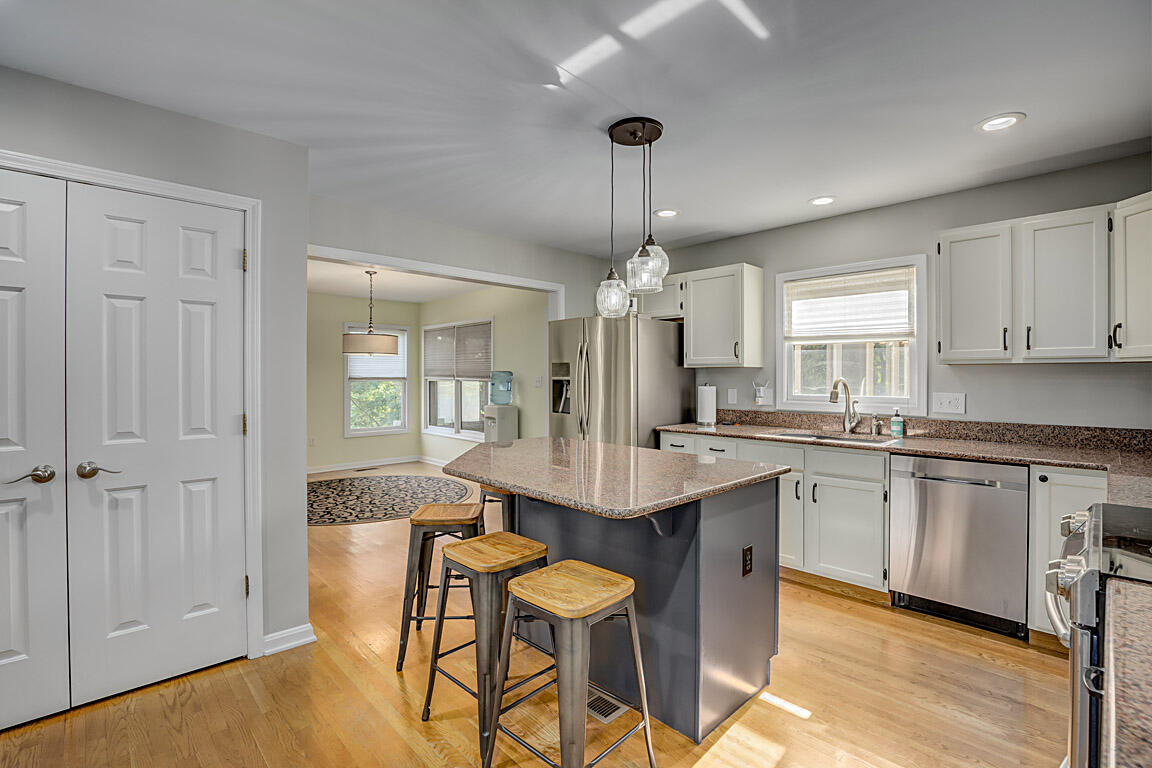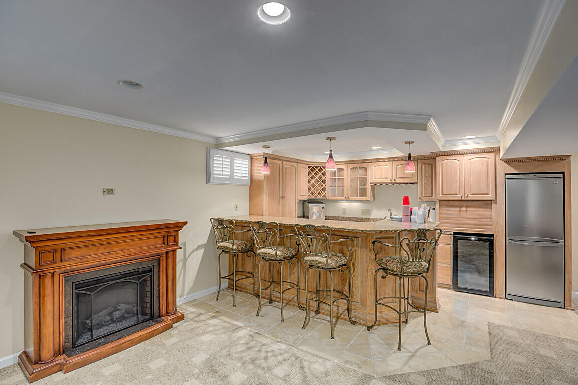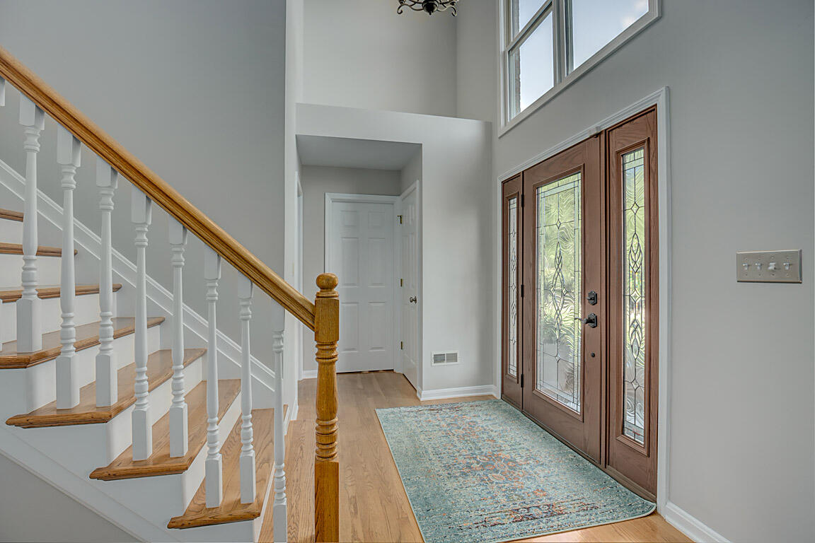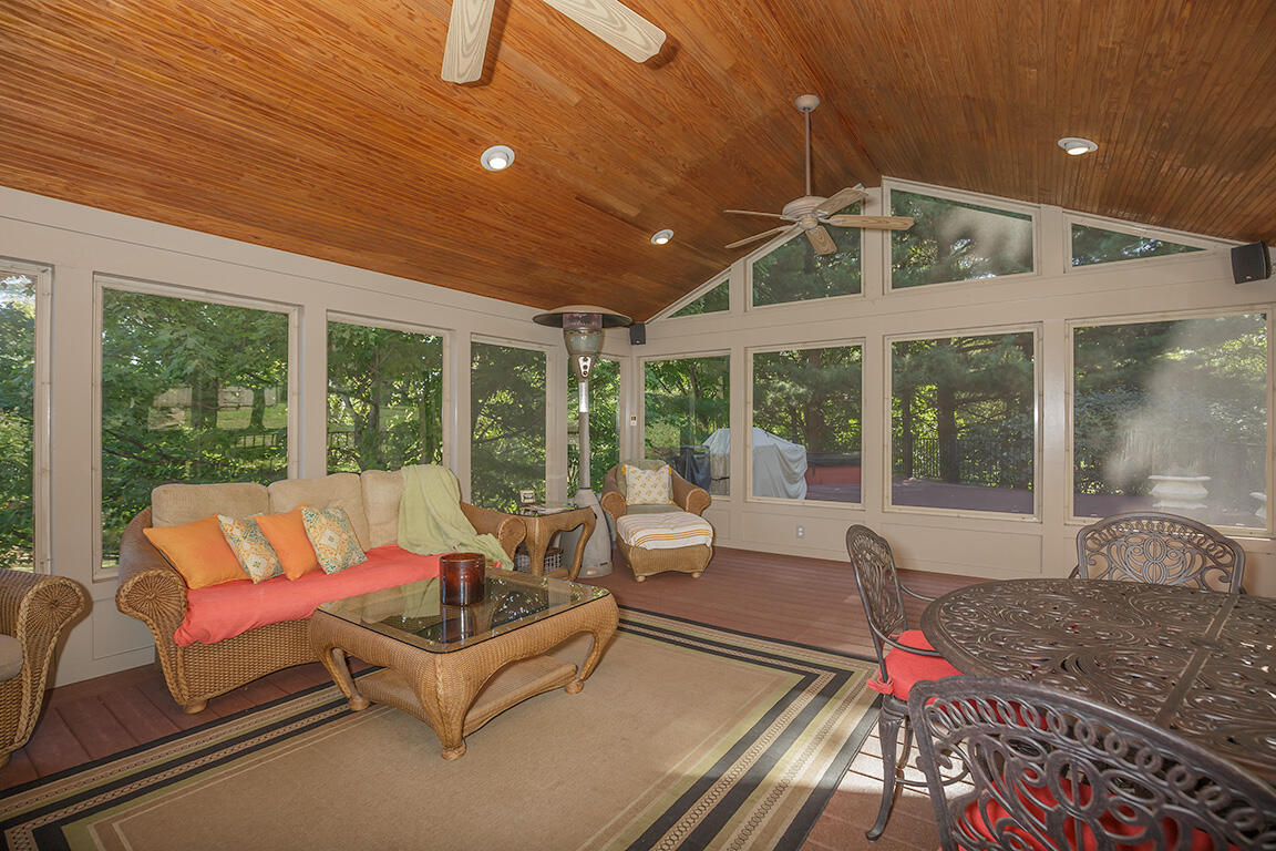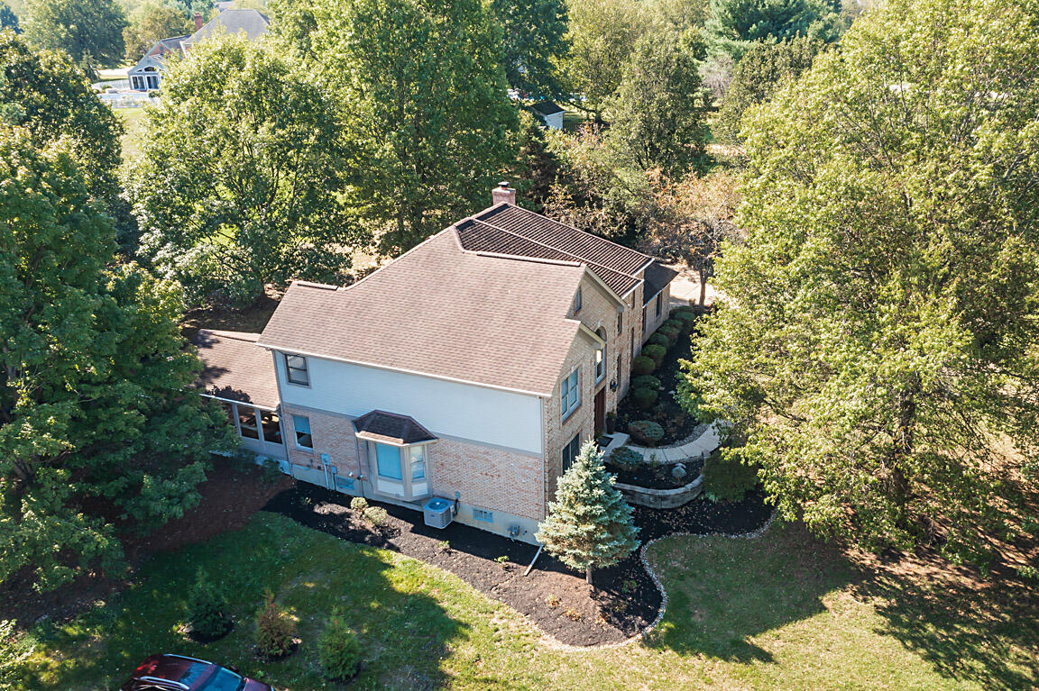 Welcome to this executive home, on a private acre+ lot in the prestigious Parlor Grove. Three finished levels balances luxury, space, and privacy. Entering the grand two-story foyer, you'll immediately notice the study and versatile living room that could also serve as a second office or a playroom. The dining room flows seamlessly into the breakfast room, which leads to the three-season room with composite decking that extends to this parklike outdoors. The kitchen has stainless steel appliances, hardwood floors, granite countertops, and a pantry for ample storage. The stunning two-story family room, with a striking stone fireplace, offers an incredible setting for a 25-foot Tree for the holidays, super bowl parties, or cozy nights. The rear staircase to the upper level is where you'll find three large bedrooms plus the primary suite w/ vaulted ceilings w/a newly remodeled bathroom. Walk-in shower, new double vanity, modern faucets, and mirrors, make it the perfect sanctuary. The lower level was custom built for entertainment by Jobe .Complete with a wet bar, wine & reg. fridge, DW, Microwave and a full a full bath. 3 car tandem garage with a shed! Showing for backup offers