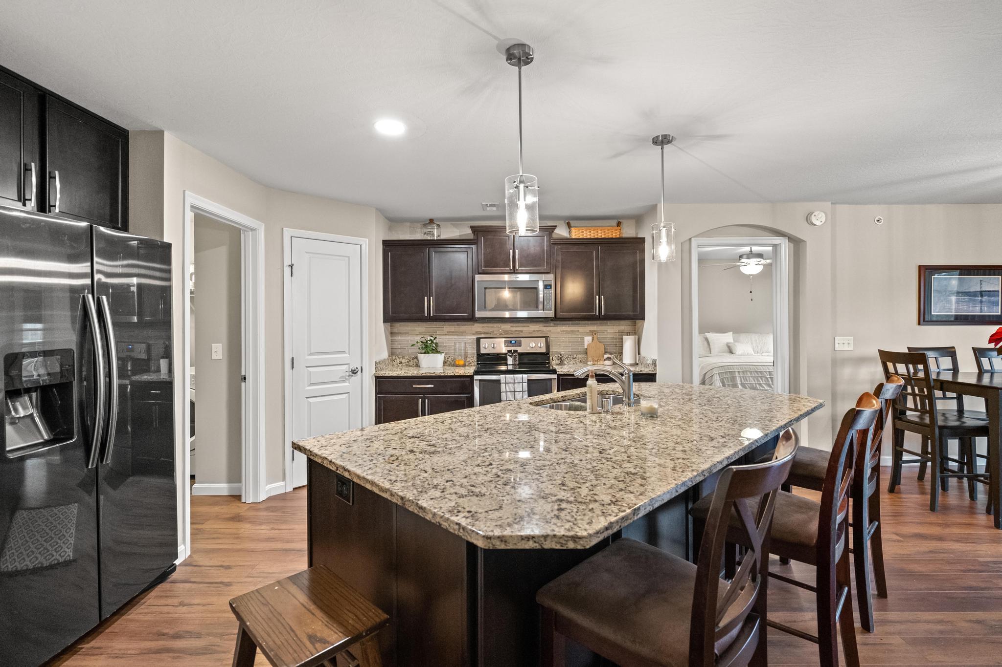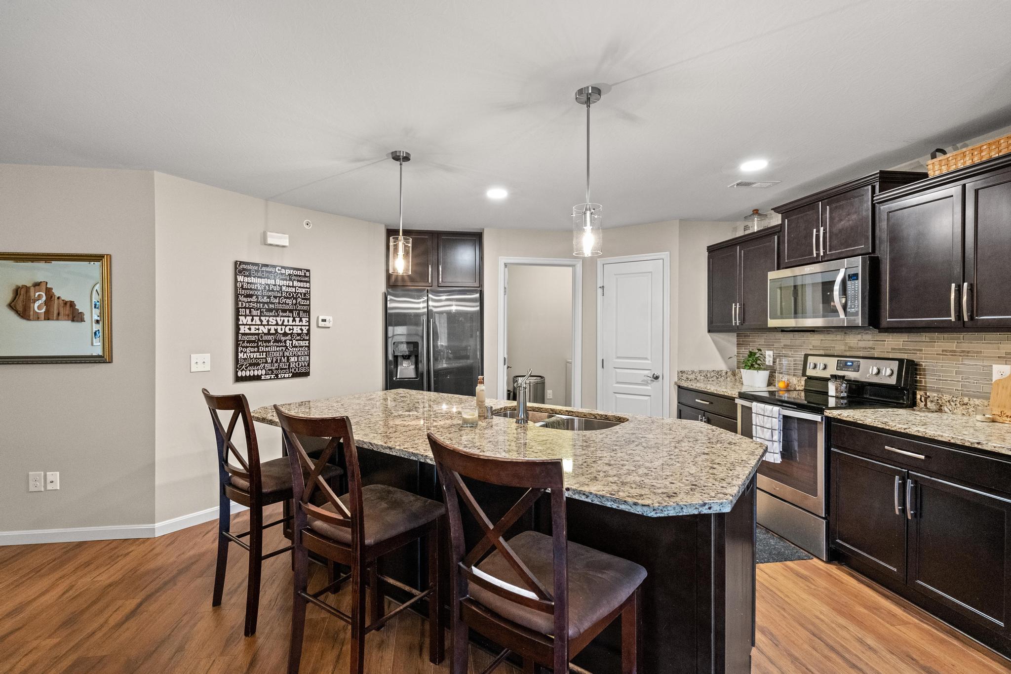 Look no further, this stunning Hayward condo is the one you have been looking for! Impeccably maintained lower level condo has large open floorplan, 2 bedrooms, 2 baths, a bonus study that could be used as a 3rd bed or home office, a 1 car garage and the best views in the community! Open living area features gourmet kitchen with granite counters, seating for 4 at the oversized island, and stainless appliances. Living room overlooks and walks out to stunning wooded views with tranquil landscapes. Imagine having your cup of coffee while listening to the stream and watching the wildlife. Large master suite has dual closets and an ensuite bath with double vanity and shower. Customization is key to this condo; with clever storage solutions, added closets, wood stairs and new luxury vinyl flooring throughout. All in a pool community with clubhouse and exercise facilities and just minutes to dining, shopping, and the interstate. This is a must see!