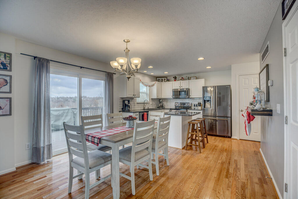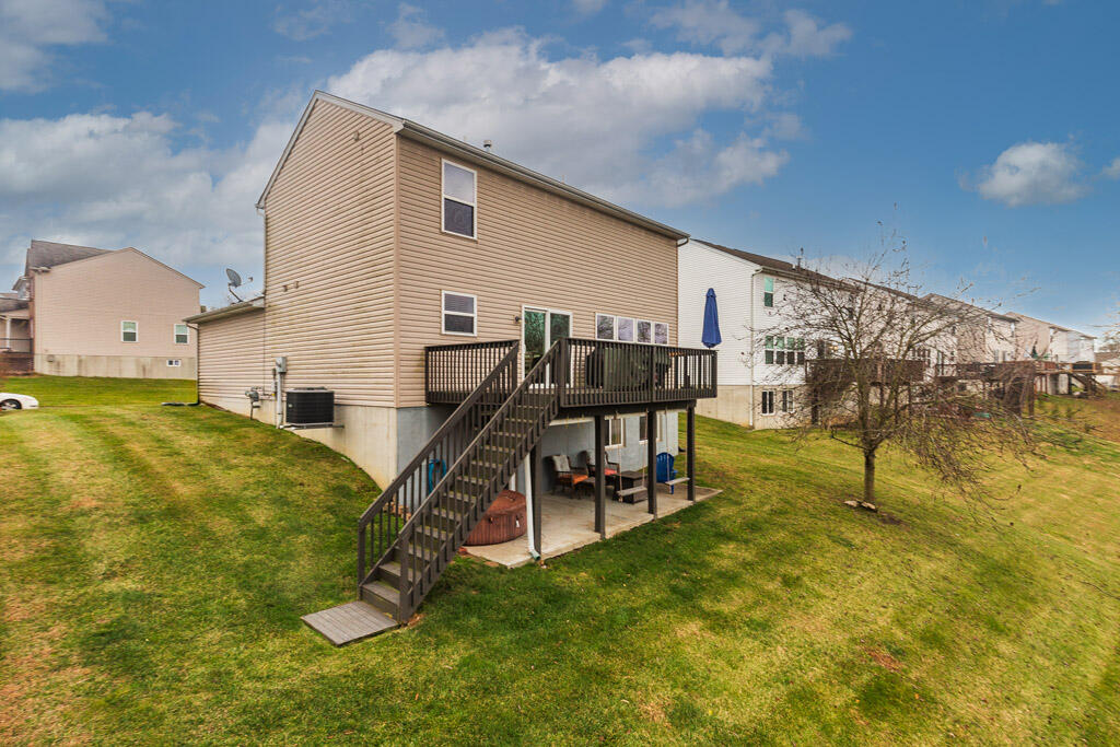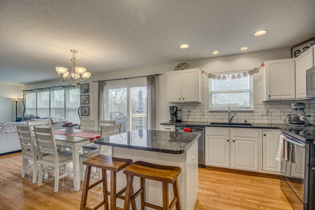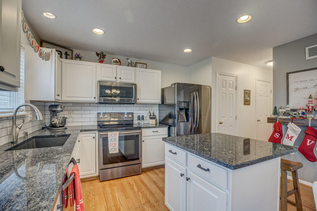 Home for the holidays... this adorable 3 bed, 3.5 bath home is ready to move right in. Three finished levels of living space and beautiful updates makes this one a must see. Open concept living on first floor, with gorgeous kitchen, are perfect for entertaining, with hardwood floors, neutral paint, eat in kitchen with granite countertops, island and counter seating and walk out to large deck. Upstairs has 3 bedrooms, including master suite with attached bath, large walk-in closet and vaulted ceilings. And basement space is an added bonus, custom bar stays with home and family room and additional full bath are just what you have been searching for! All centrally located and minutes from shopping, dining and the interstate.