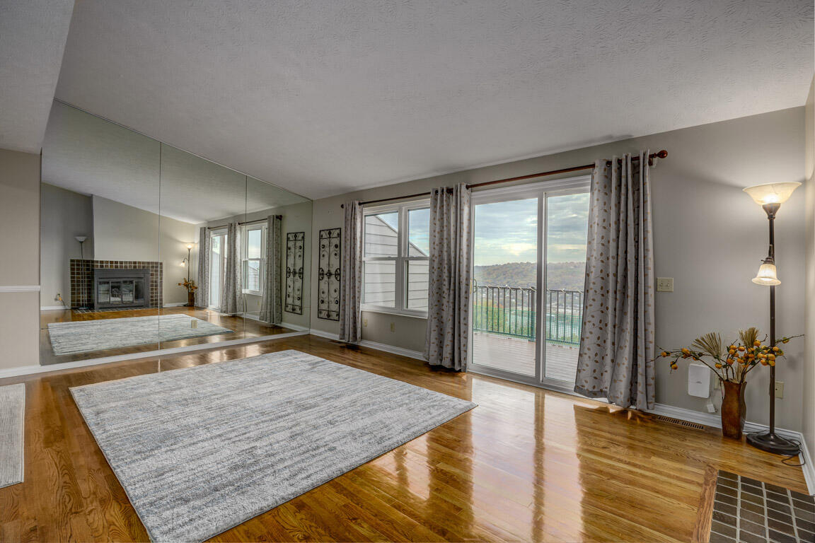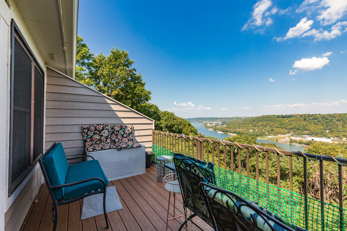 Breathtaking panoramic views of the Ohio River and Cincinnati skyline set the stage for this beautifully updated 2-bedroom landominium in a private section of a vibrant community. Enjoy the outdoors with lush green space, walking trails, and recreational amenities, including a pool, clubhouse, tennis, and basketball courts. Inside, the home features a brand new composite deck (2024), fully remodeled kitchen, updated bathrooms, refinished hardwood floors, and two wood-burning fireplaces with electric inserts. Newer windows and exterior doors enhance comfort and efficiency, while the lower-level wet bar and generous storage make entertaining and daily living a breeze.