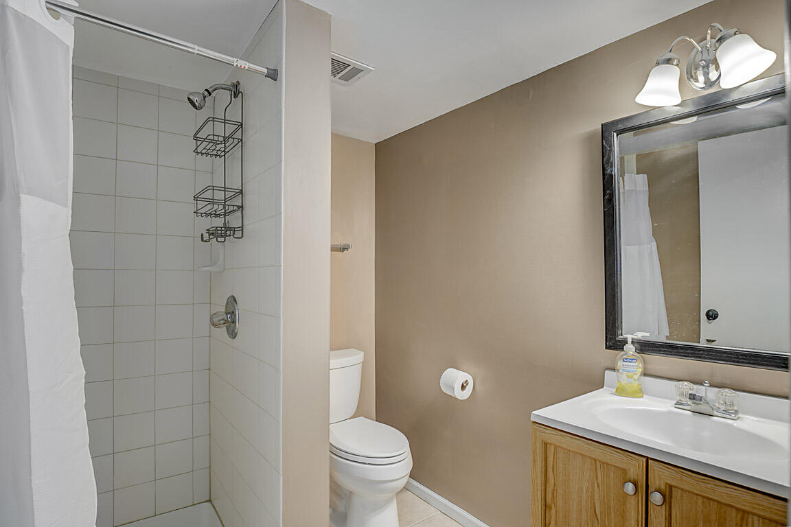 The first floor bathroom has been thoughtfully updated with stylish ceramic tile and heated floors for added comfort. Step outside through the new sliding door to enjoy a spacious 20x16 deck--ideal for entertaining or simply relaxing in the private backyard.