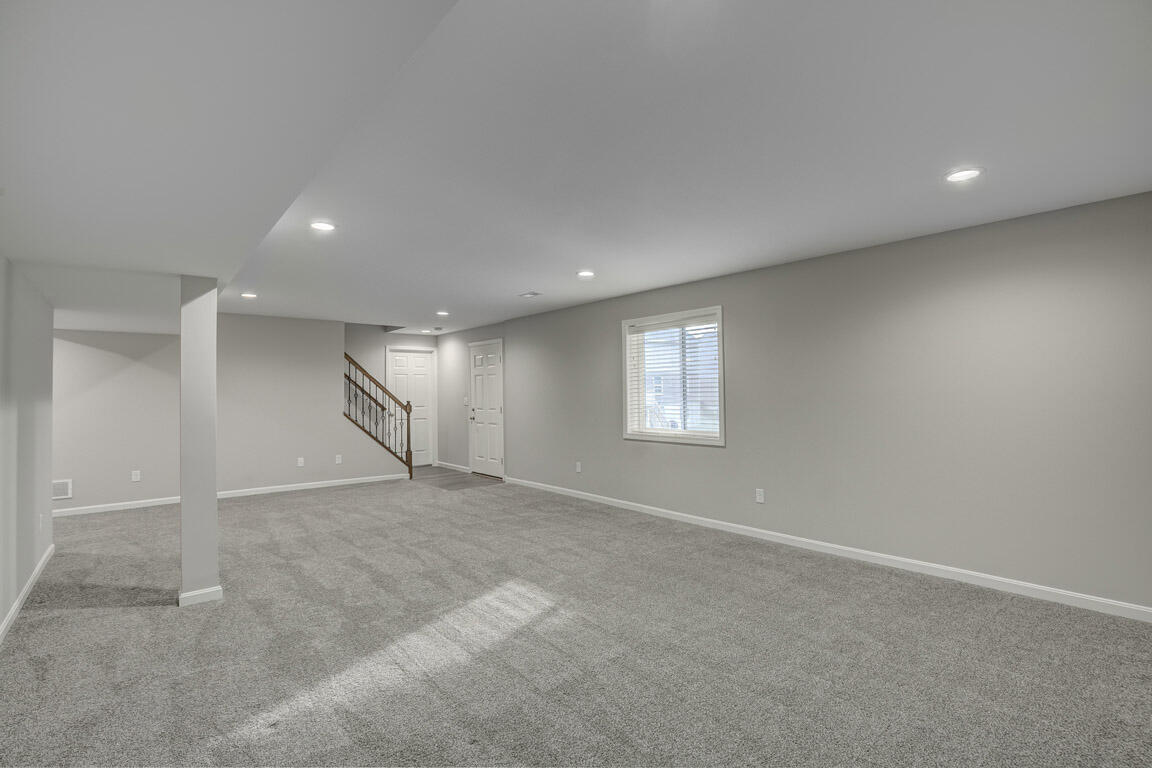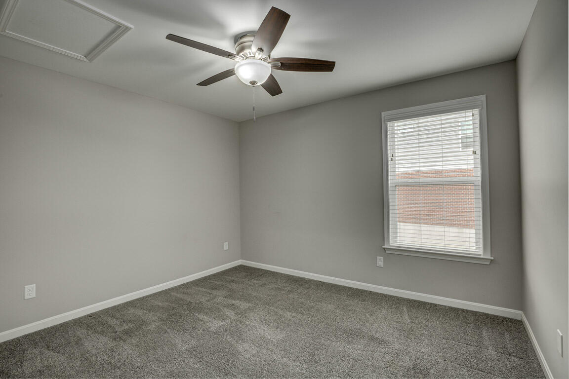 Custom blinds are already installed throughout the home, adding both style and convenience.