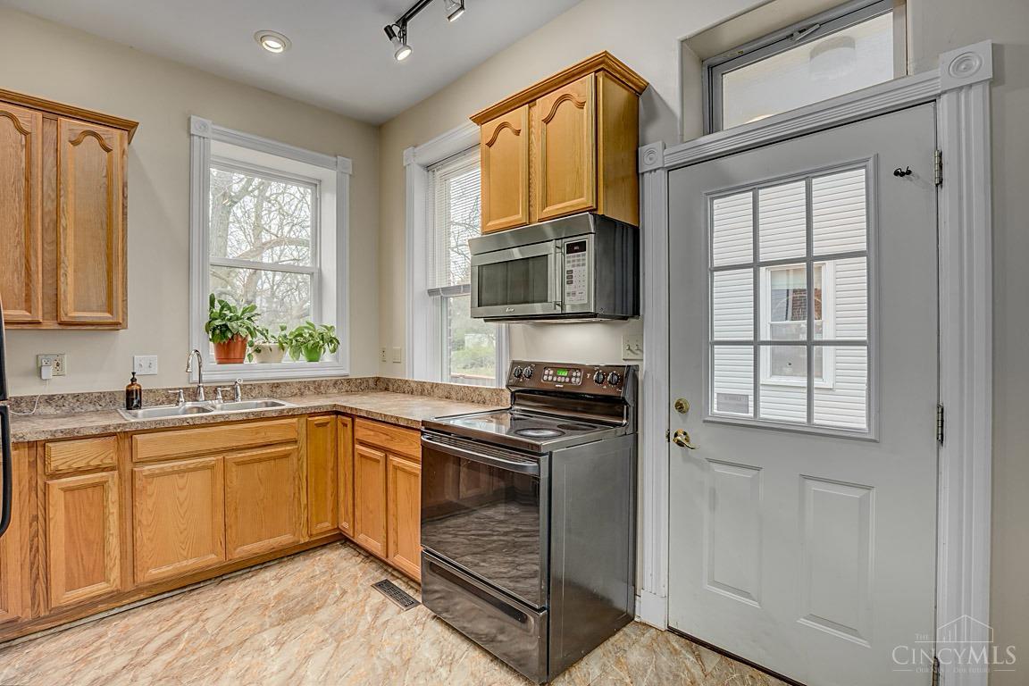 Charming Two-Bedroom with Curb Appeal and Outdoor Entertaining Space! This darling two-bedroom is full of character and ready to welcome it's next owner. From the inviting covered front porch to the oversized back deck, it's designed for both relaxation and entertaining. You'll love the ample off-street parking and the rare bonus of a two-car garage. Inside, the home blends original charm with thoughtful updates. The bright kitchen offers generous cabinet space and comes equipped with a refrigerator, dishwasher, stove, and microwave. Tall ceilings and abundant natural light create an open, airy feel throughout, with a decorative fireplace adding a cozy touch to the front room. Ceiling fans throughout the home add comfort, and the fenced backyard is larger than it appears - offering a private outdoor space that's hard to find in urban settings. This one you'll want to call home.
