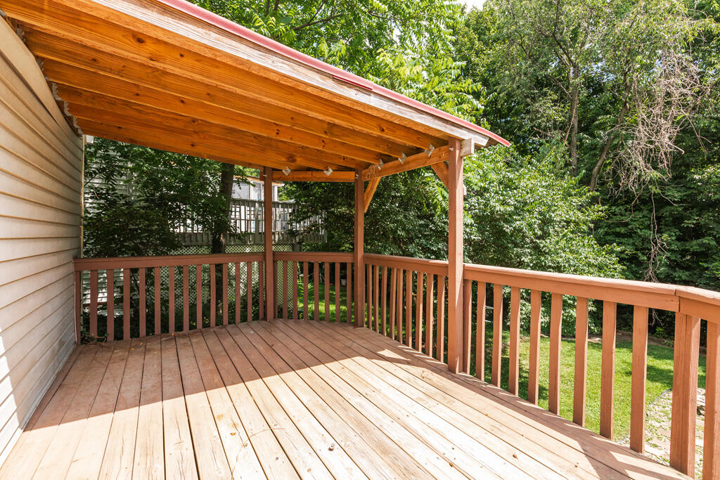 Welcome to this 3 bedroom, 1.5 bathroom home situated on a quiet cul-de-sac! This amazing tri-level home has tons of space and endless possibilities. A finished lower level with a spacious family room, built-ins, and walk-out access to your outdoor oasis! The backyard features an oversized deck and covered sitting area overlooking a wooded view. Plenty of space to host summer cookouts and even add a pool! Plus, you'll enjoy the convenience of having a detached one car garage. This home is ready for your finishing touches and is only minutes to shopping, dining, highways, and more! In a low HOA community, with pool access and more!