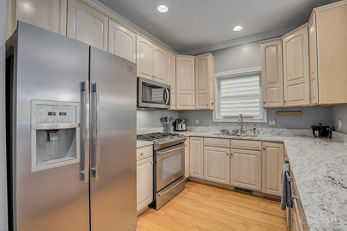 Charming Columbia Tusculum Home. Discover this beautifully updated single-family home located in the heart of Columbia Tusculum, just minutes from vibrant restaurants, cozy coffee shops, and downtown. Boasting three finished levels, this home offers an inviting open floor plan with hardwood floors throughout the main level. The spacious living room opens to a private deck made of low-maintenance composite wood, perfect for outdoor relaxation. The kitchen features sleek granite countertops, modern cabinetry, and a new sliding glass door that seamlessly blends indoor and outdoor living. Upstairs, you'll find two generously sized bedrooms, including a primary suite with large closets and an updated bathroom complete with double vanities, a stylish shower, and new flooring. A large hall closet provides additional storage convenience. The finished lower level offers a versatile space for a home office, recrea