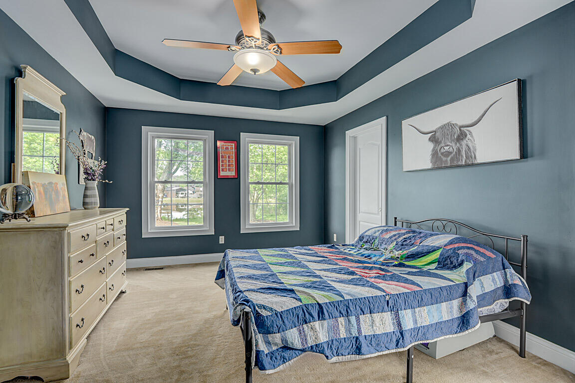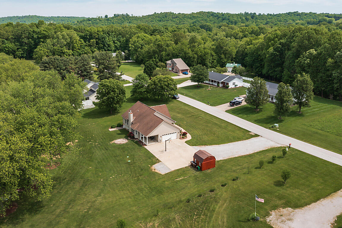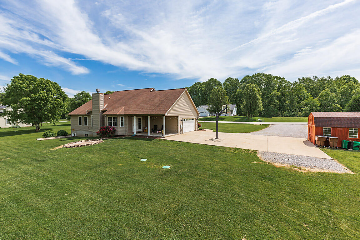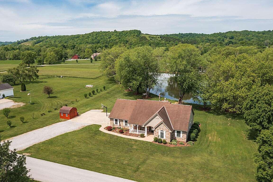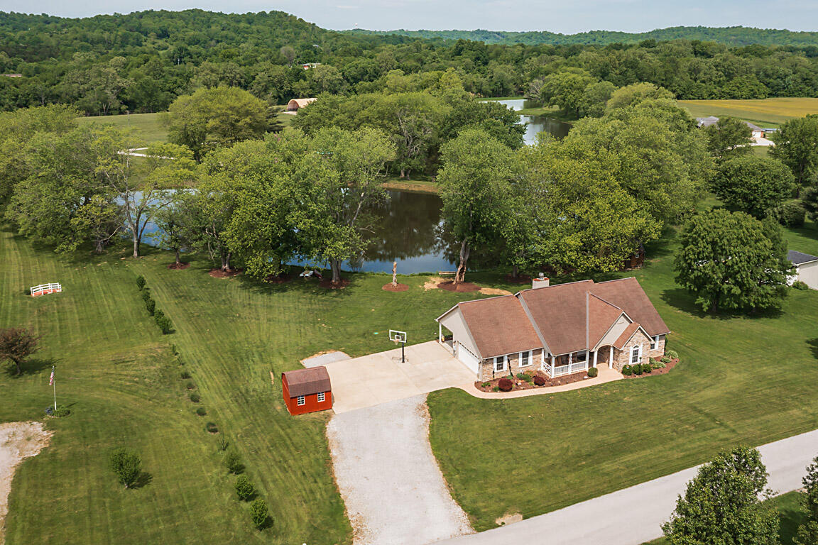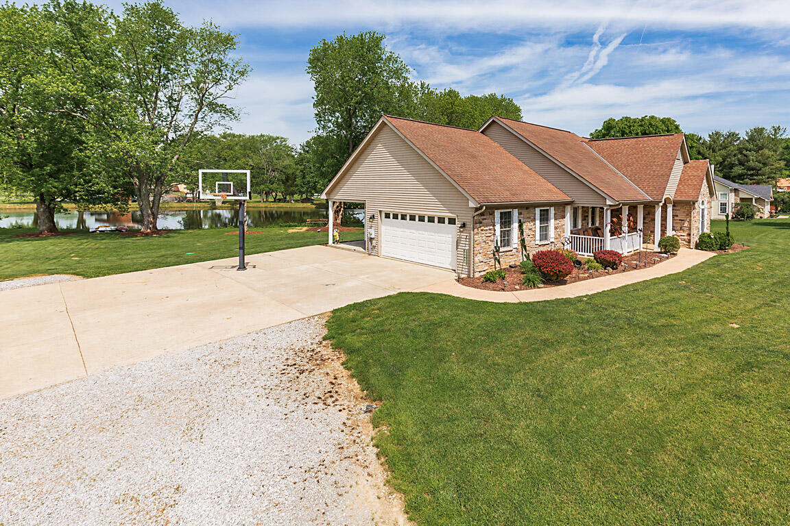 Imagine living in this picturesque four-bedroom, three-full-bath ranch, nestled on 1.53 acres with a serene lake view. The home features a charming covered front and back porch, perfect for relaxing and enjoying the outdoors. With plenty of off-street parking and space for RVs or a camper, plus a shed for extra storage, you'll have all the convenience you need. The walkout lower level is fully finished, offering a complete second kitchen, a full bath, a spacious family room, and a private entrance--ideal for multi-generational living. If you're looking for a perfect blend of neighborhood, feel and country privacy, this home is a must-see!