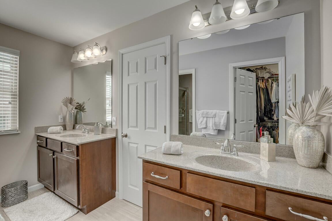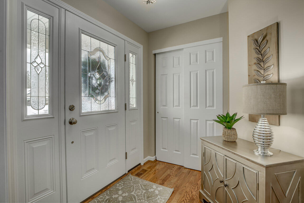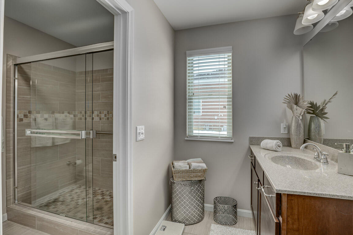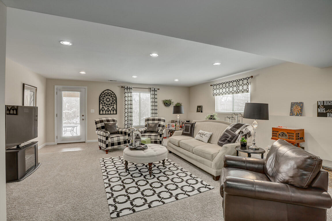 The main level includes a first-floor primary suite with walk-in closet and oversized bath, a flexible office or additional bedroom, and a convenient laundry room. The finished lower level lives like a second home, complete with large living area, two additional bedrooms, full bath, kitchenette, second laundry, and walkout to a private, wooded backyard.