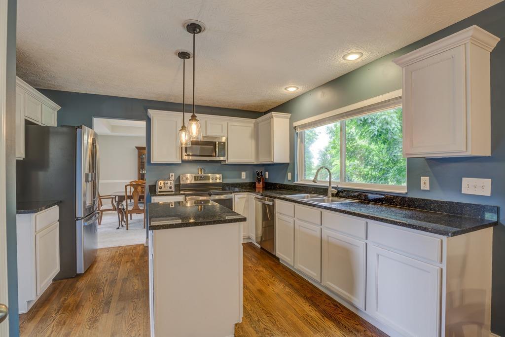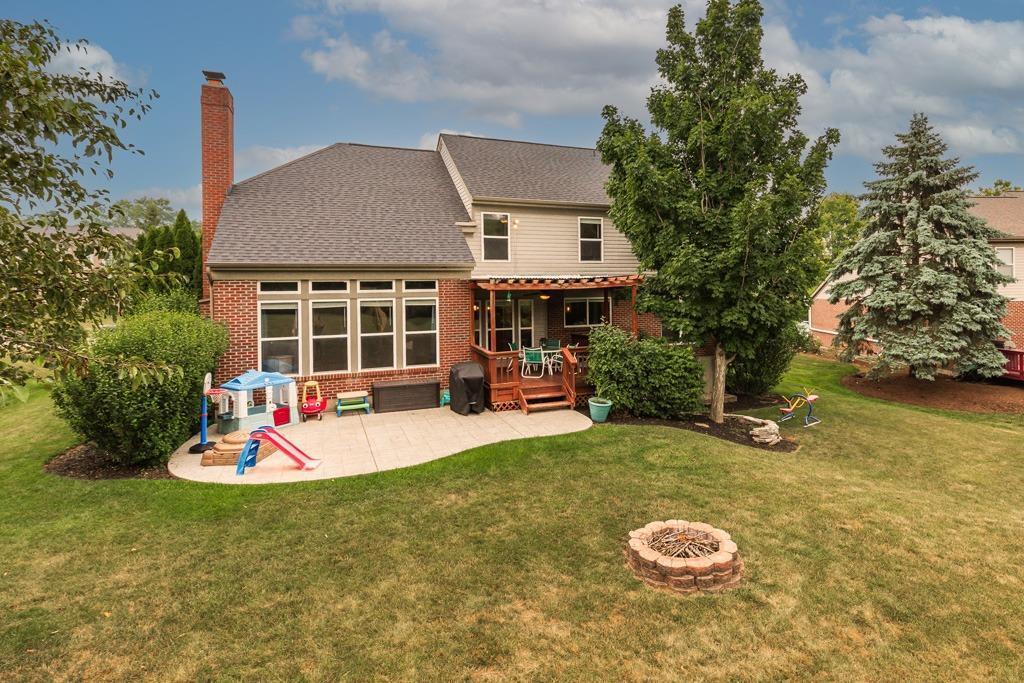 Lakota schools & over 3200 sq. ft? 4bd, 3.5ba home has 3 finished levels. First floor has lots of space w/ a study, family and formal & living dining rm. The family room boasts cathedral ceilings and walks out to a glorious flat back yard with a large stamped patio. Kitchen has stainless appliances, granite and lots of storage. Owners suite includes a gas fireplace, updated ba w/shower& garden tub. LL has a flex/guest room, rec room. Fantastic outdoor living space, community pool, and walking
