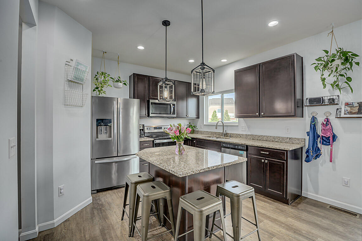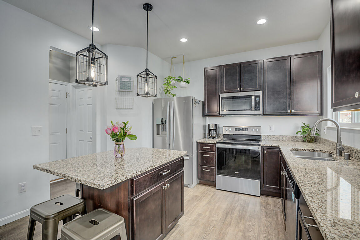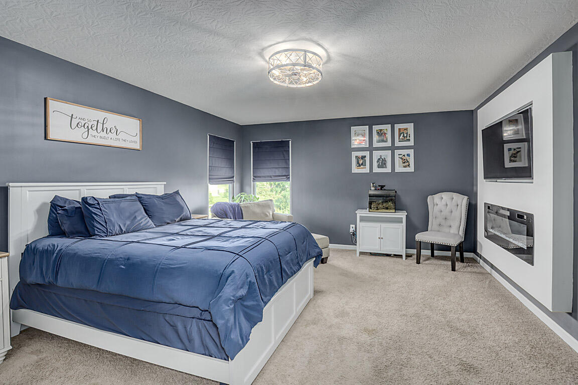 The open kitchen flows seamlessly into the dining area and out to the deck. It boasts beautiful granite countertops & new pendant lighting over the island & table. Upstairs you'll find four generous bedrooms and a convenient laundry room. The primary suite showcases its own fireplace & a spa‑like bath with double vanities, a soaking tub, walk‑in shower and private commode.