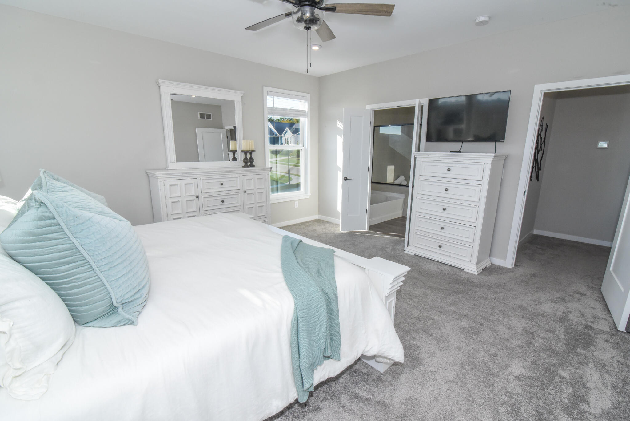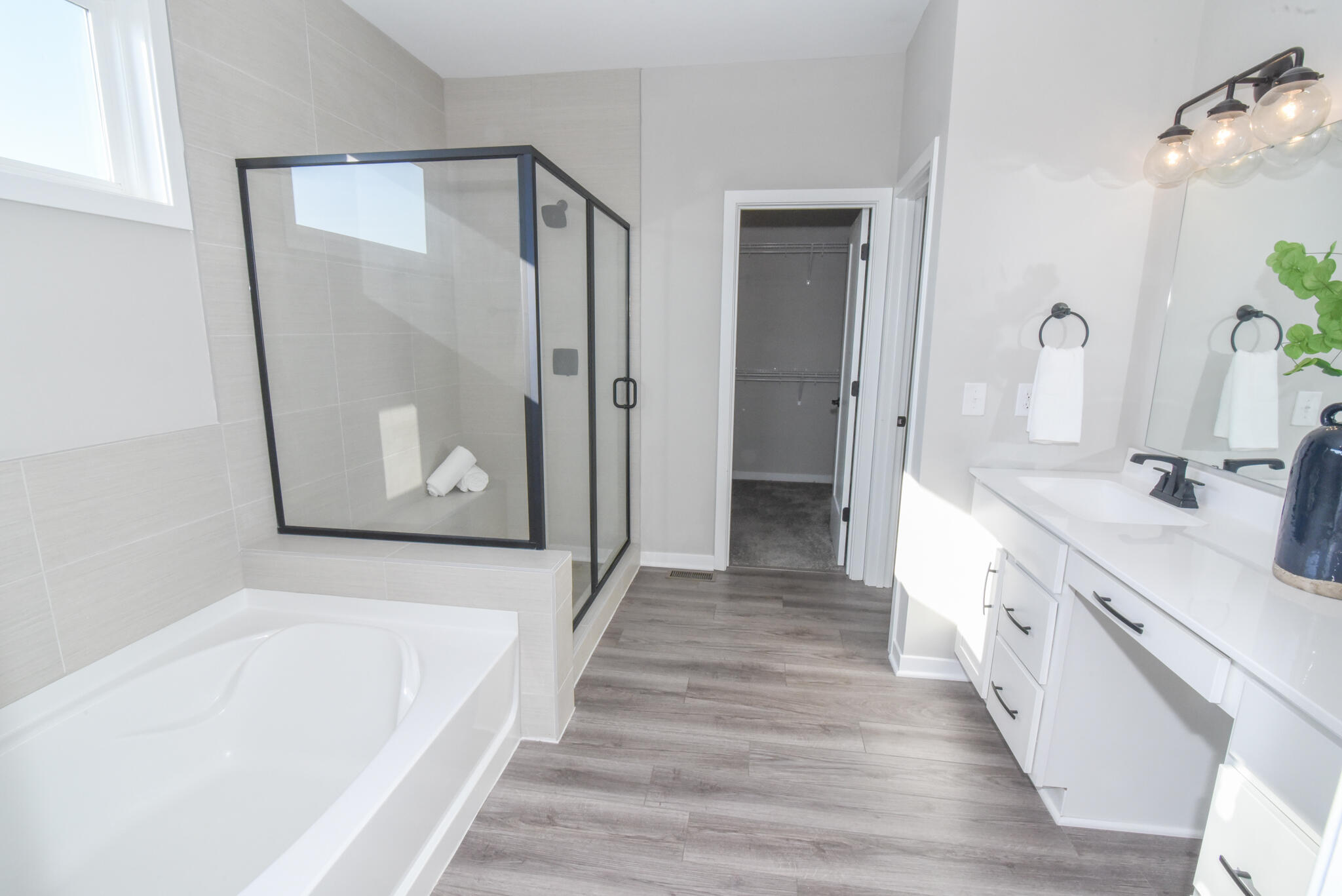 1st floor homeowners retreat with an en suite that includes a double bowl vanity, soaking tub, separate shower and spacious walk-in closet. Large 1st floor laundry room. Upstairs you'll find 3 additional bedrooms each with a walk-in closet, a centrally