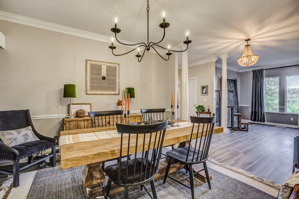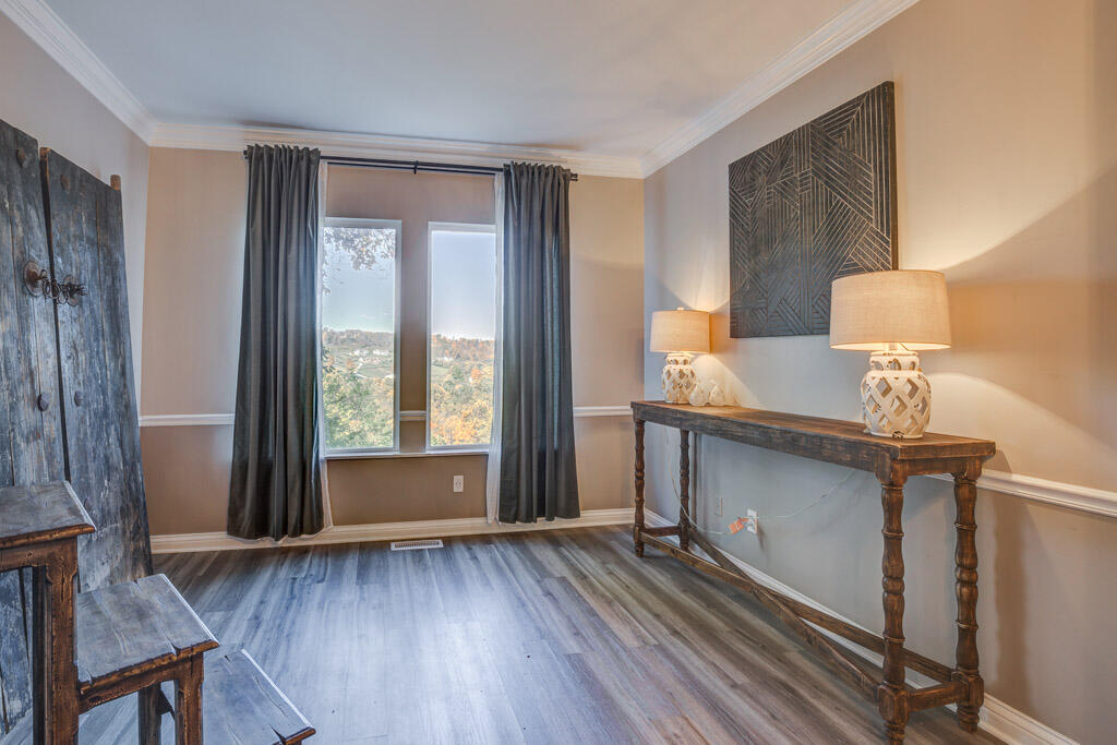 Wow! Wait till you see this one. Perched up on a hill and nestled in the trees, this one of a kind custom home is perfect for those seeking privacy, beautiful views and a unique home. Formal dining, office space or living space w/crown molding and hardwood floors, unique lighting and incredible views from every window. The kitchen has tons of space with a large peninsula,), A fabulous pantry that could be easily converted back to the laundry room. ( hook ups are still there) The family room is in this open space walks straight out to the back porch where you can sit and enjoy river views. A bourbon or wine tasting room off the family room that offers equally stunning views. 4 bed and 3 full baths upstairs with an owner's suite equipped with a soaking tub, walk in shower, and double vanities. The LL level offers plenty of space to have gatherings, with great finished space, 2nd laundry hookup and a full bath. All this plus a 4-car garage is waiting for you!