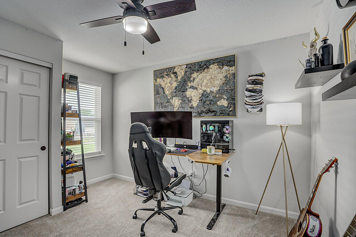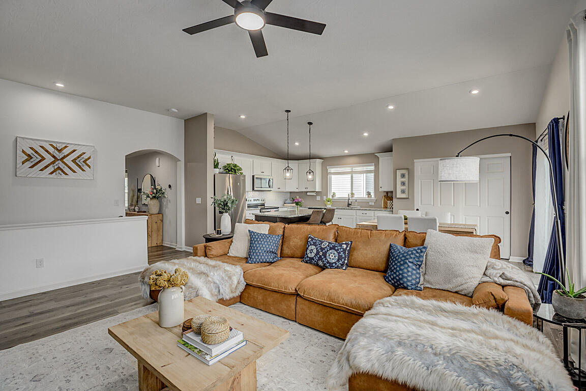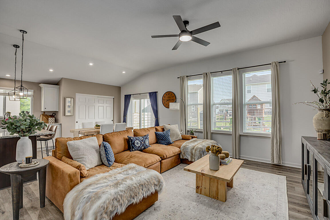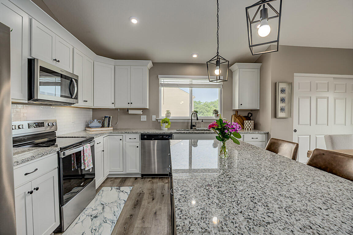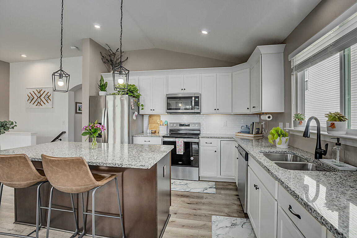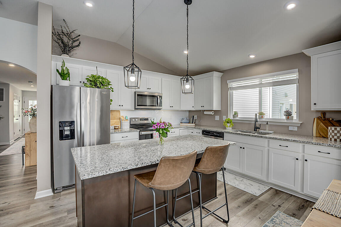 If you're searching for a charming, ranch-style home that perfectly blends style and comfort, look no further. This nearly new, three-bedroom, three-bath home features elegant nine-foot ceilings throughout, ceiling fans in every room, and a primary suite with cathedral ceilings. Cooking and entertaining meals in this gourmet kitchen with a huge island, white cabinets with crown molding, granite countertops, and stainless steel appliances will delight your family as well as guests. The open floor plan seamlessly connects dining and living areas, leading effortlessly to a delightful back porch. The primary suite is a true retreat, offering a double vanity, a spacious walk-in shower, and a custom-designed walk-in closet. The lower level is ready for your finishing touches, as the seller has newly added a full bath. With large windows that let in plenty of natural light and a welcoming front porch perfect for morning coffee, this home truly is the ideal place to settle in.