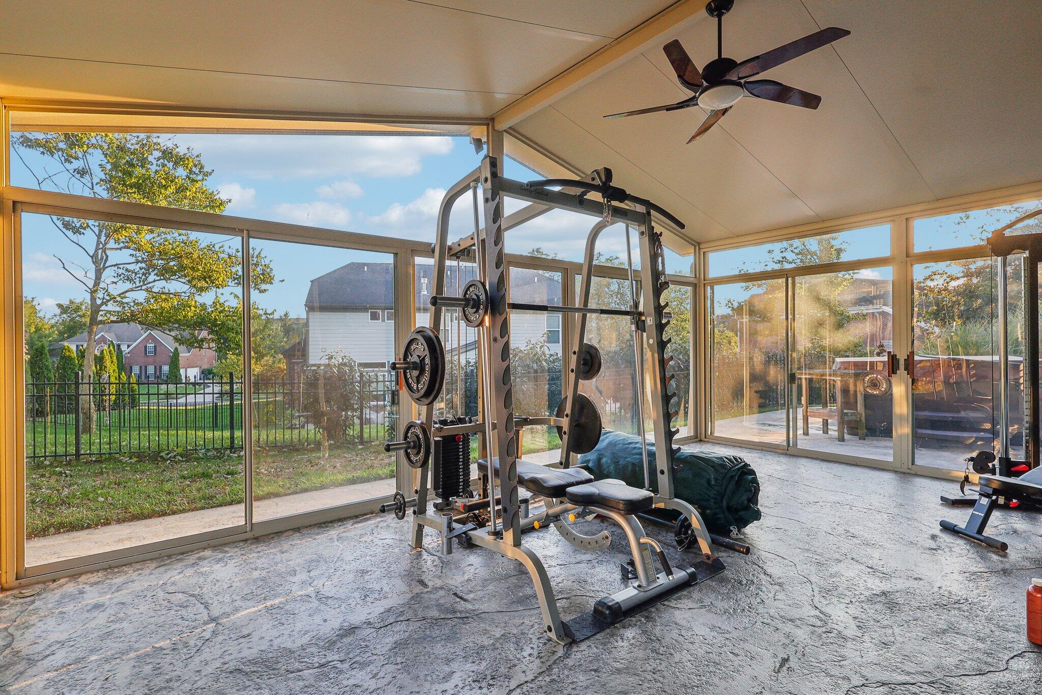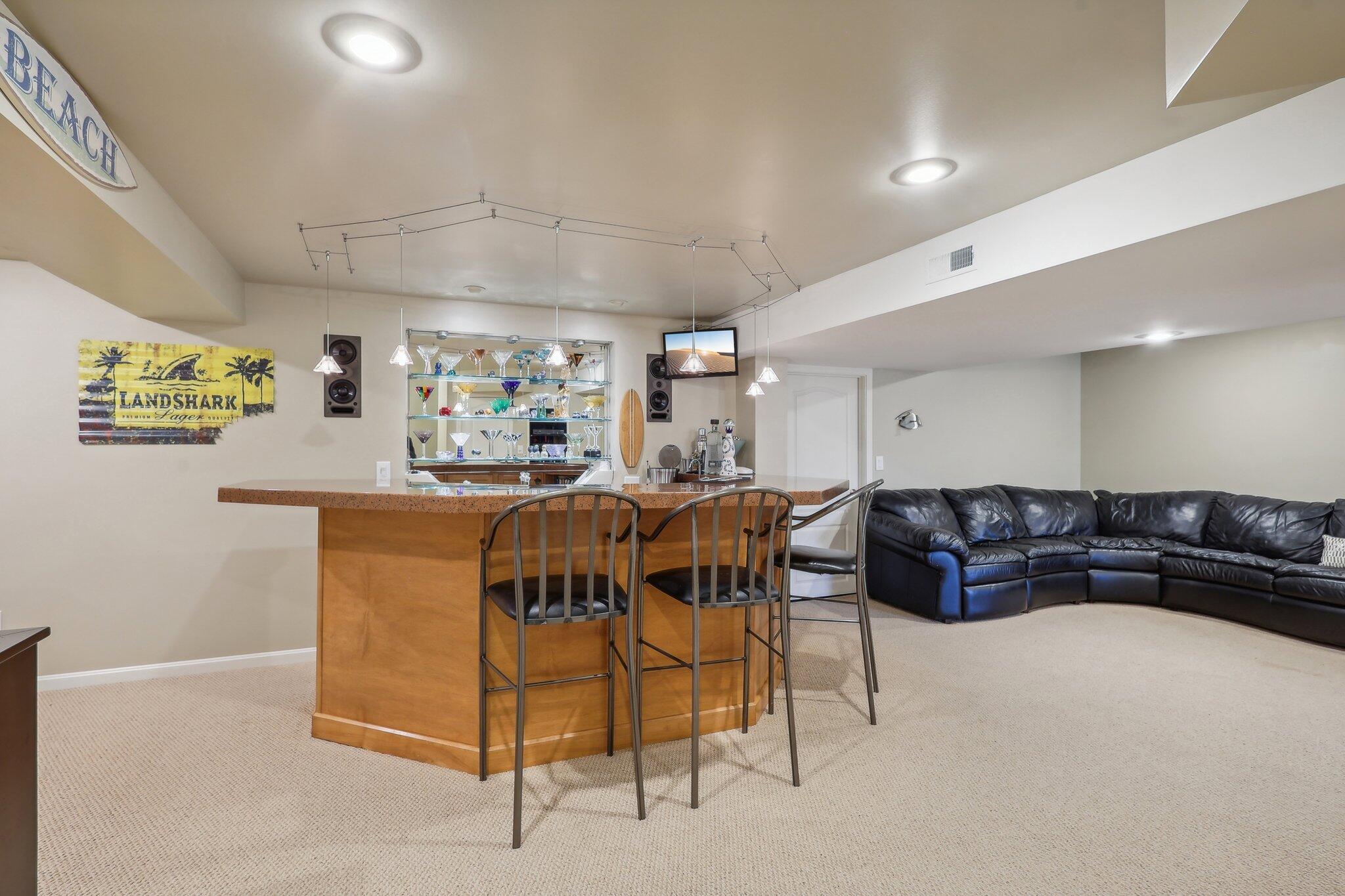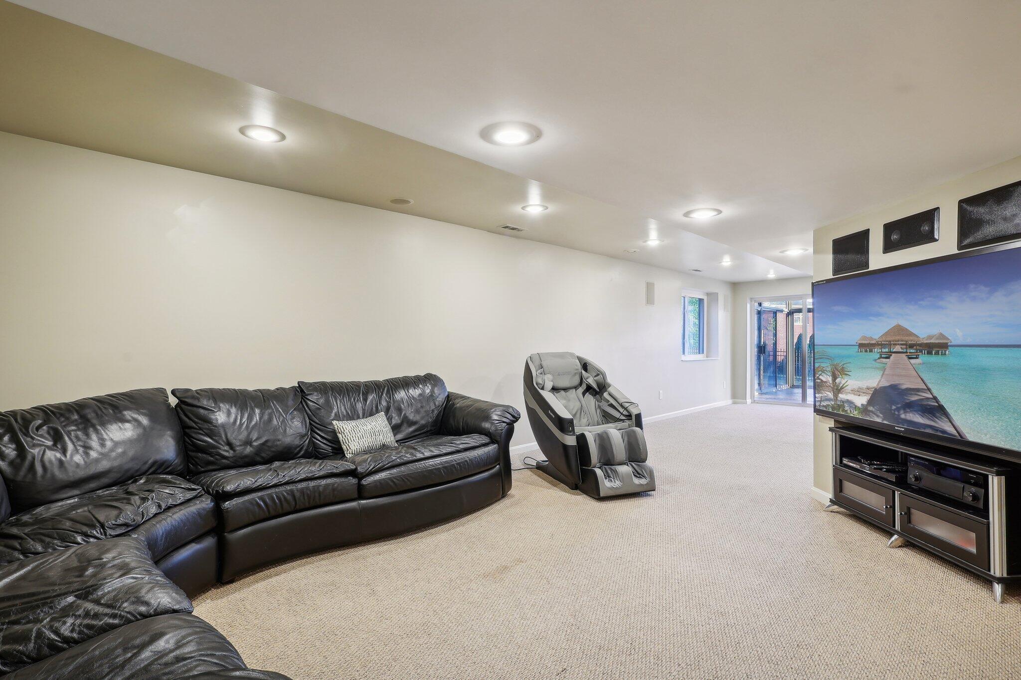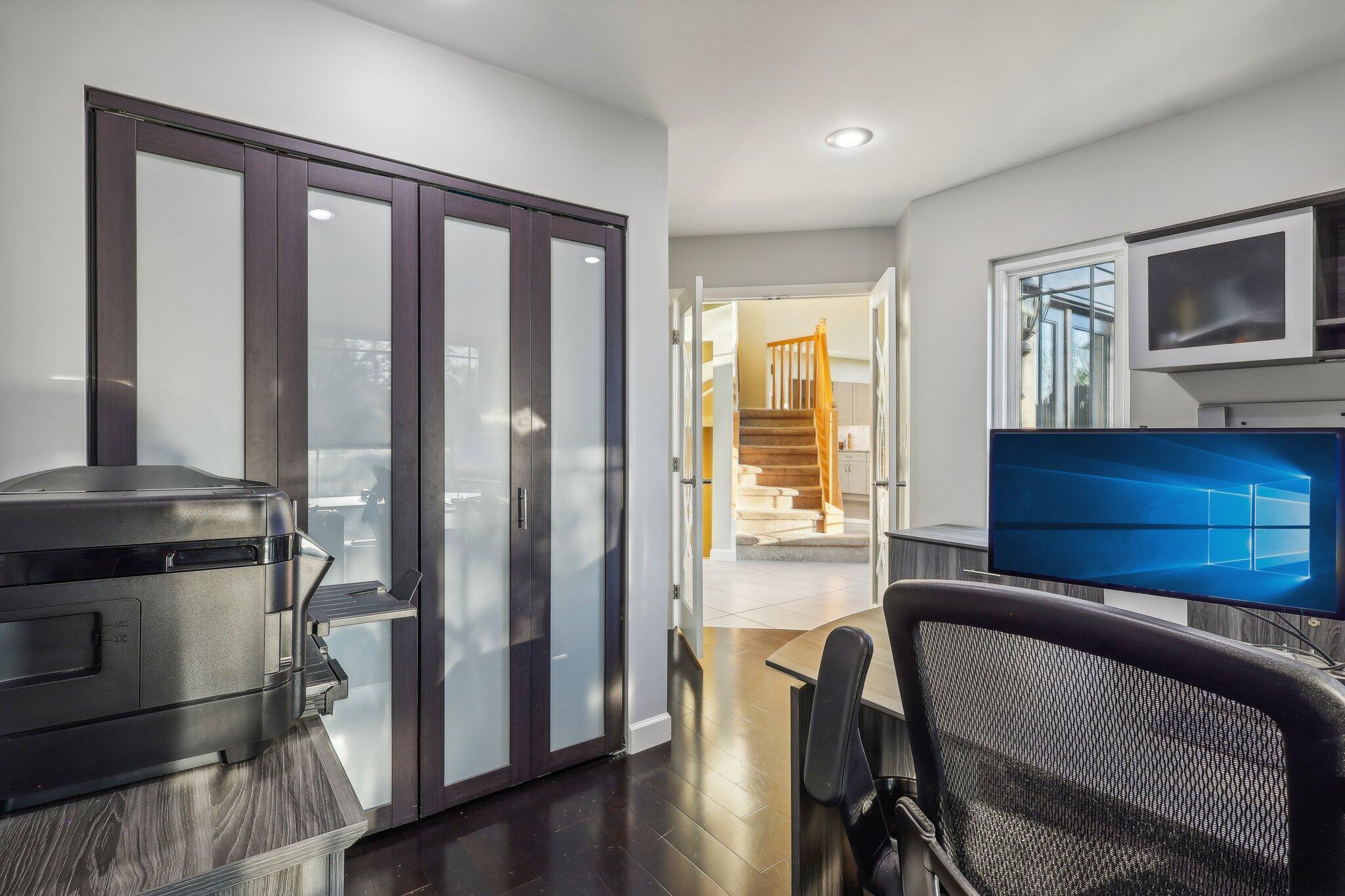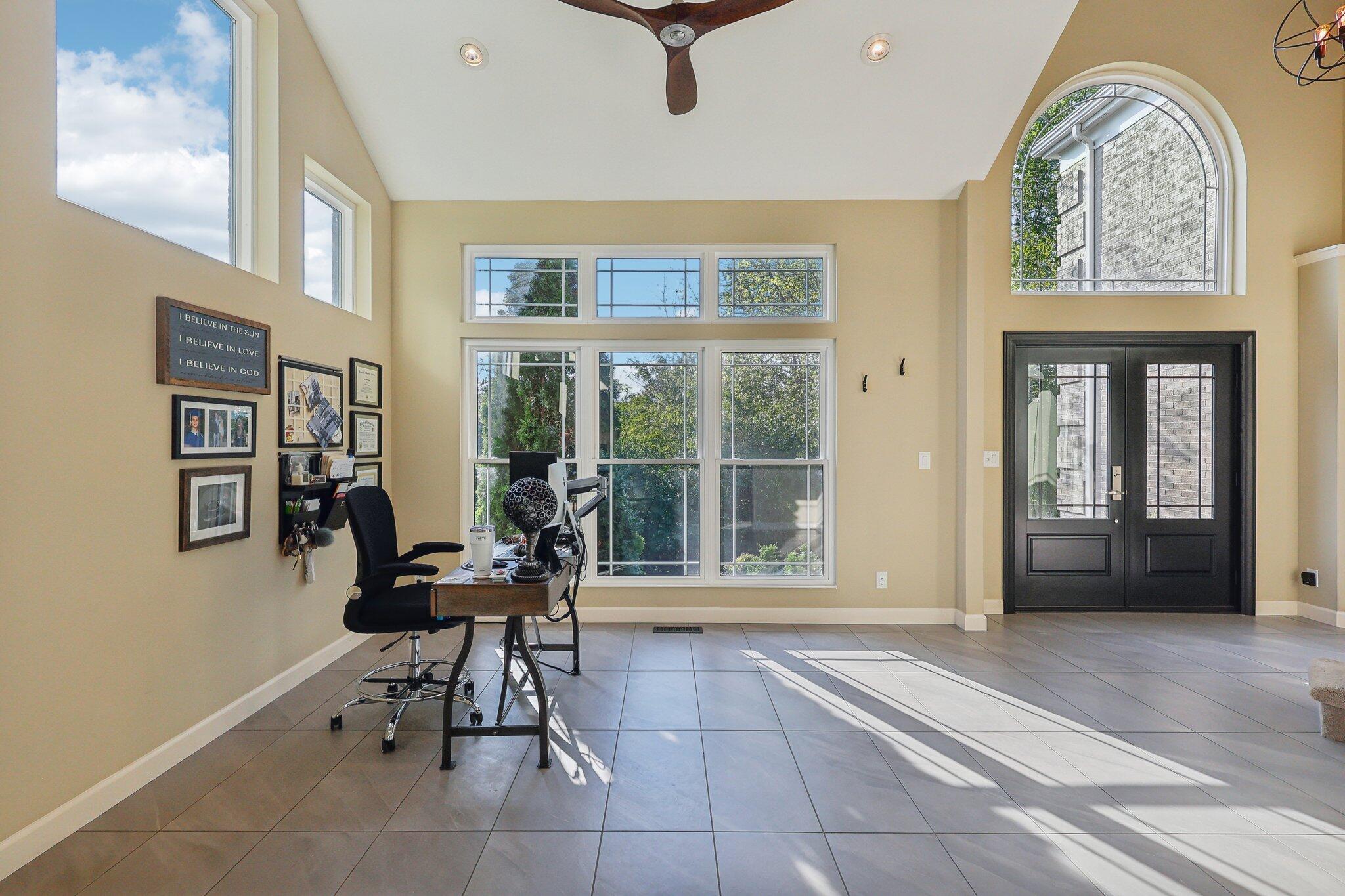 The impressive two-story great room opens seamlessly onto a composite deck, offering breathtaking views of your private outdoor oasis, complete with a custom bar and a heated inground pool. Venture to the side and find a serene solarium leading to a beautifully stamped concrete patio and a rejuvenating hot tub.