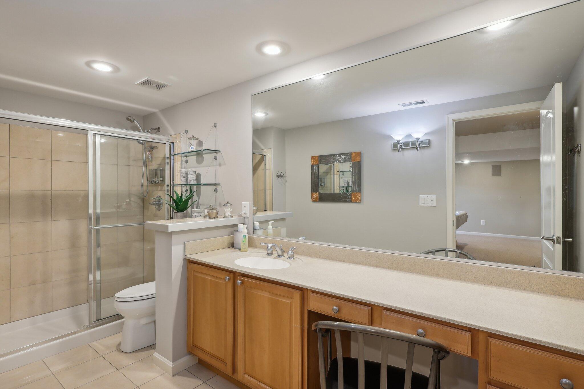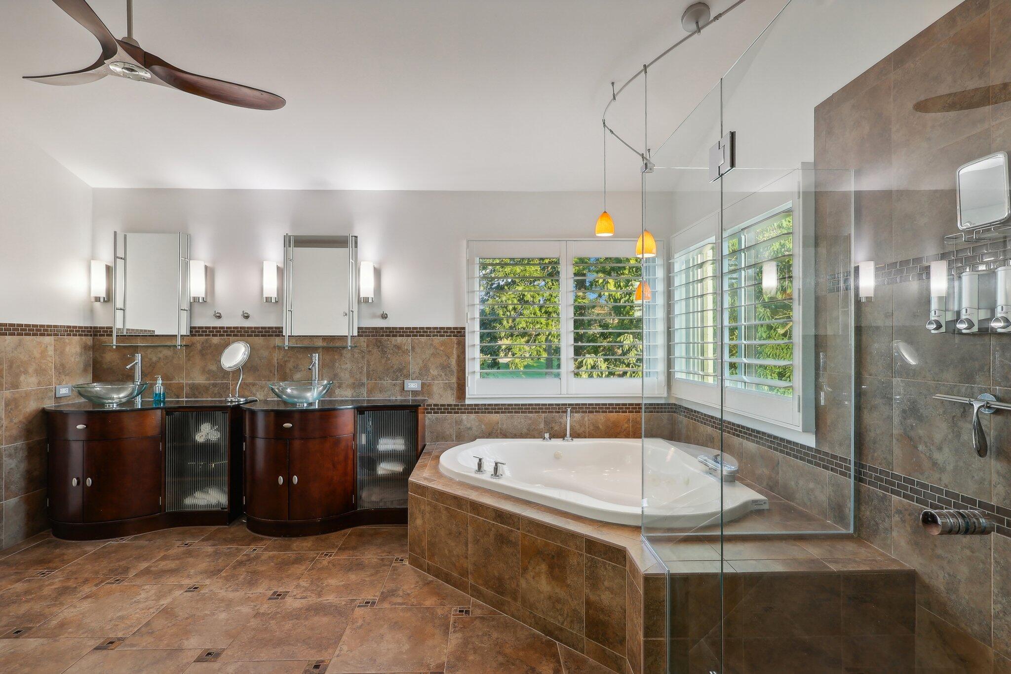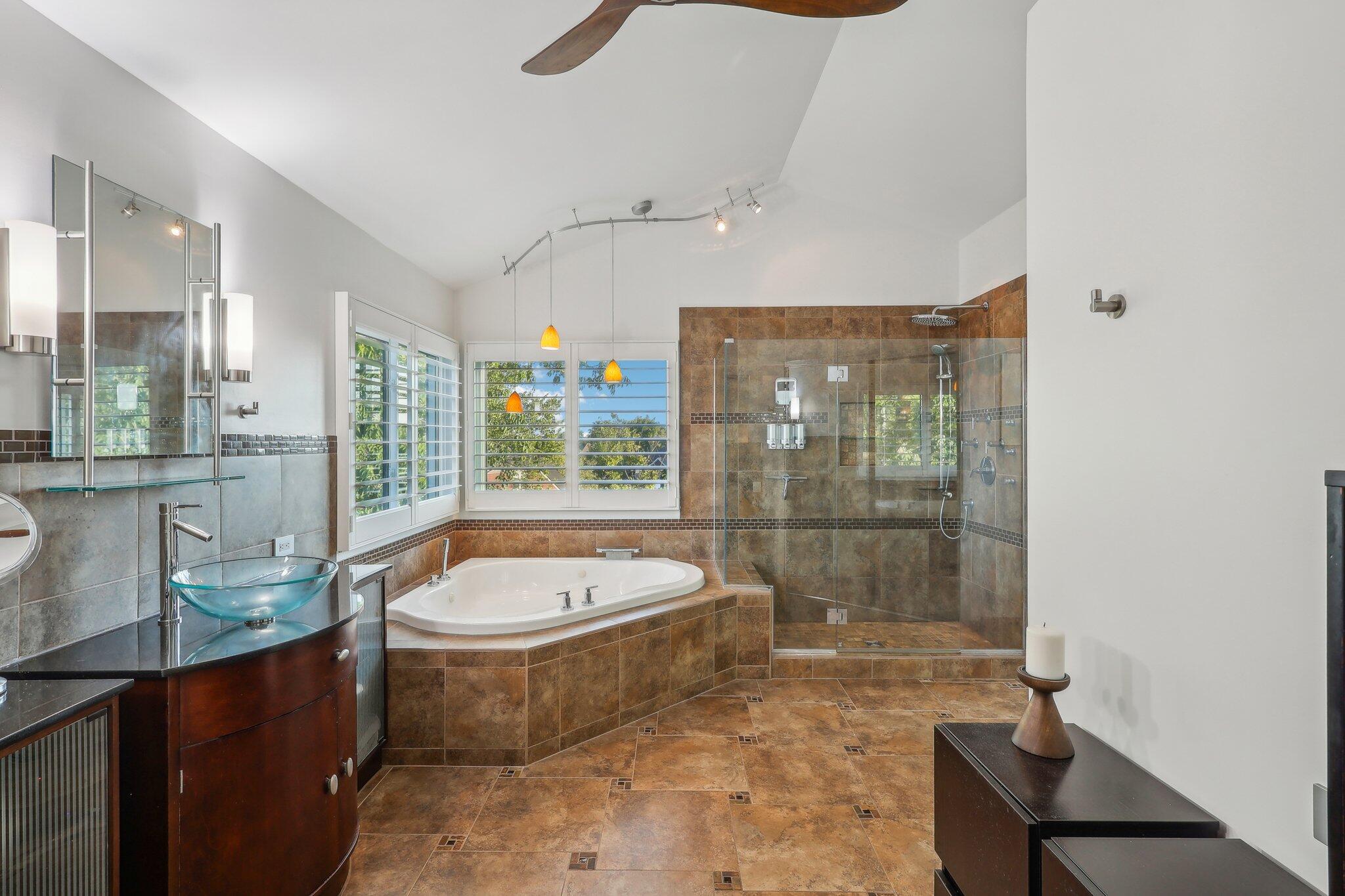 Retreat to the second floor, where you'll find an entirely redesigned primary suite featuring elegant tile floors, a luxurious jetted tub, a walk-in shower, and s