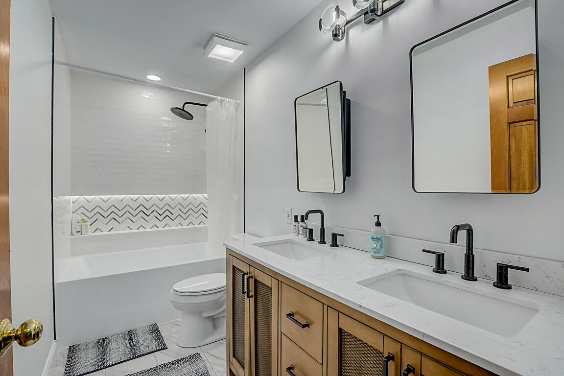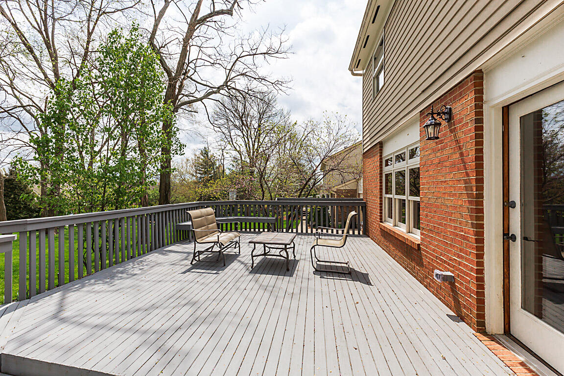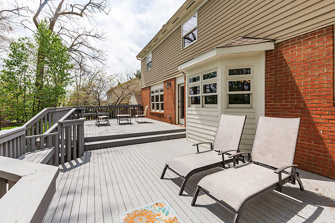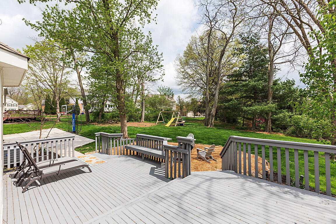 Step out to a large, tiered deck overlooking the backyard. Hardwood floors span the family room, kitchen, & foyer. Natural wood trim and molding add a classic touch. On the 2nd floor, the primary suite boasts vaulted ceilings, a huge walk-in closet, double vanities, tub, shower, & hardwood floors. The hall bath has been renovated with a shower combo, double vanities, new lighting fixtures, tile floors, & hardware. The 1st floor powder room has also been redone with subway tile, new vanity, lighting, mirrors, & a new commode.