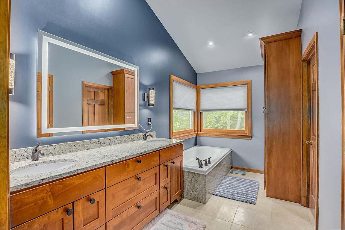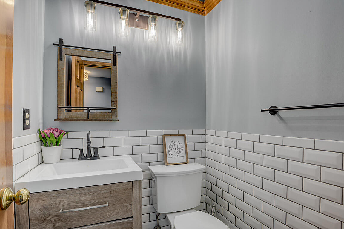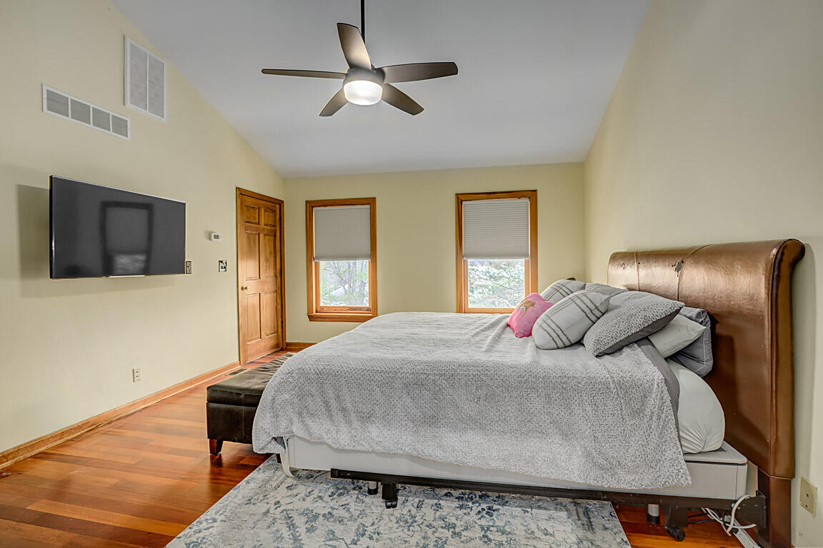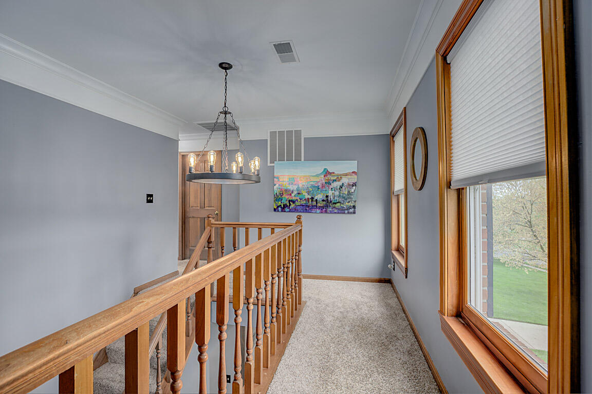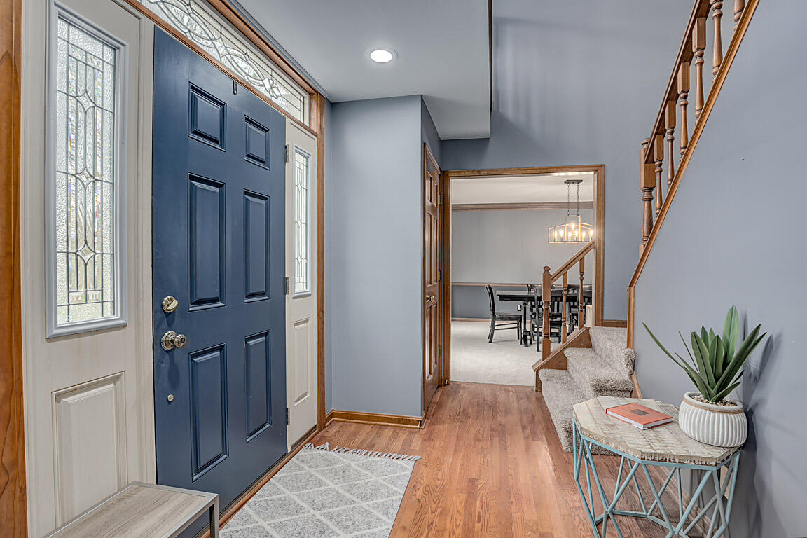 Step out to a large, tiered deck overlooking the backyard. Hardwood floors span the family room, kitchen, & foyer. Natural wood trim and molding add a classic touch. On the 2nd floor, the primary suite boasts vaulted ceilings, a huge walk-in closet, double vanities, tub, shower, & hardwood floors. The hall bath has been renovated with a shower combo, double vanities, new lighting fixtures, tile floors, & hardware. The 1st floor powder room has also been redone with subway tile, new vanity, lighting, mirrors, & a new commode.